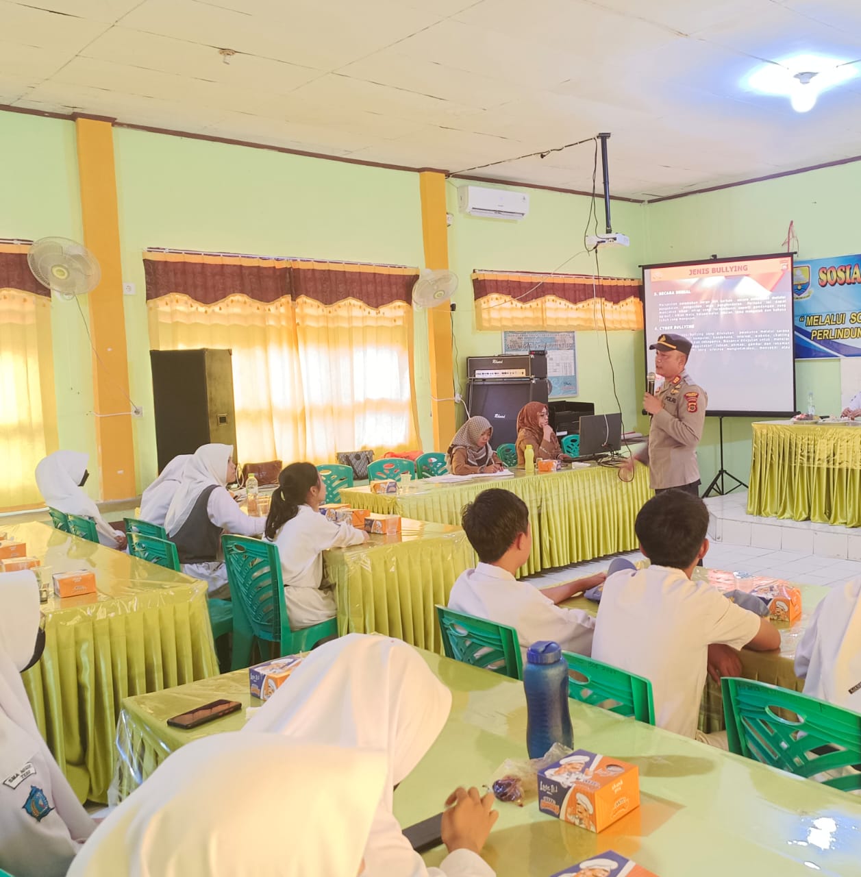 Bertempat di Ruang Kelas SMA Negeri 3, tentang sosialisasi cegah bullying disekolah dan bijak menggunakan medsos .