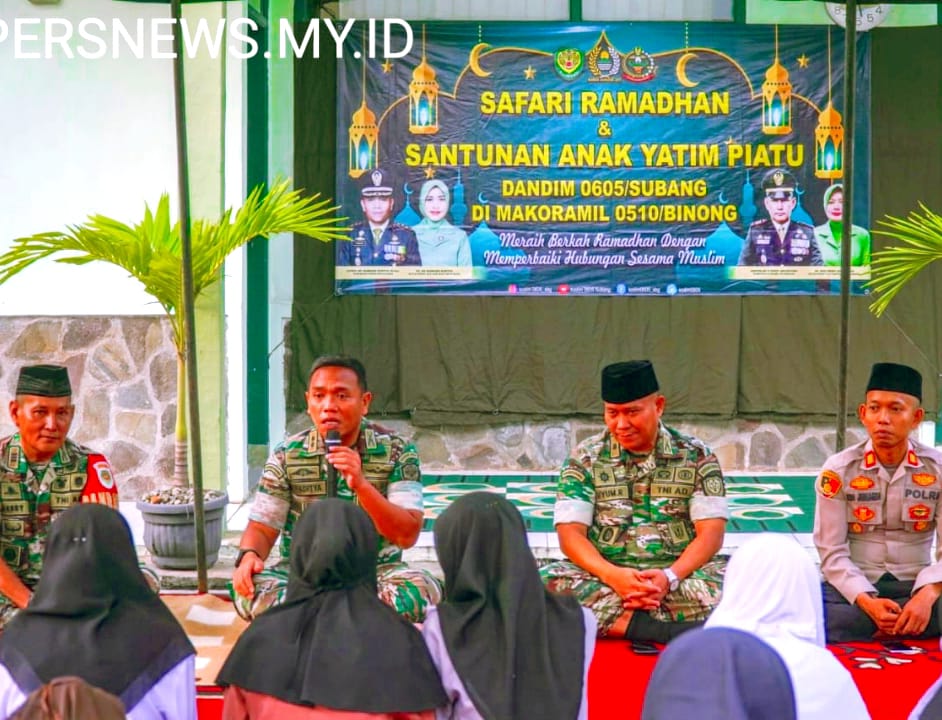 Dinastinews.com Aceh | Subang – Bulan suci Ramadhan menjadi momen yang paling dinanti dan dirindukan oleh umat Muslim didunia. Banyaknya keistimewaan bulan Ramadhan, membuat umat Muslim merasakan nikmatnya menjalani ibadah dan ber-lomba² dalam menebarkan kebaikan seperti: Yang dilakukan Kodim 0605/Subang menggelar kegiatan safari Ramadhan memberikan santunan kepada anak yatim Piatu diwilayah Koramil 0510/Binong. Jumat Sore 31/3/2023.