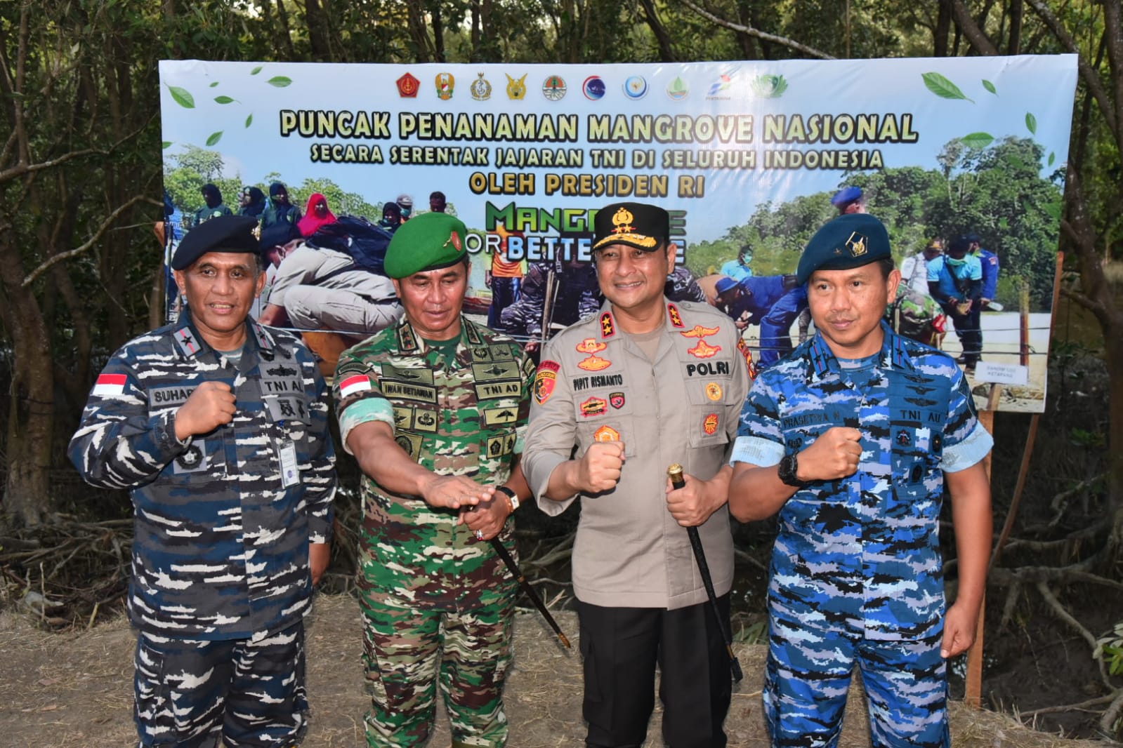 Puncak Penanaman Mangrove Nasional secara serentak jajaran TNI di seluruh Indonesia kali ini terpimpin secara video converence (vicon) oleh Presiden RI Ir. Joko Widodo di Taman Wisata Alam (TWA) Angke Jakarta Utara dilaksanakan oleh TNI-POLRI, Pemerintah, perwakilan masyarakat, mahasiswa dan pelajar.