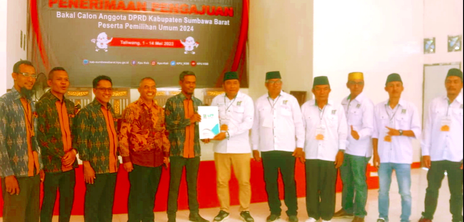 Dinastinews.com Aceh | Taliwang – Sumbawa Barat – NTB : Andi Laweng Bakal Calon Anggota DPRD Dapil 1 Taliwang Kabupaten Sumbawa Barat dari Partai Kebangkitan Bangsa melakukan pendaftaran di KPU Kabupaten Sumbawa Barat pada, Sabtu (13/5/2023).