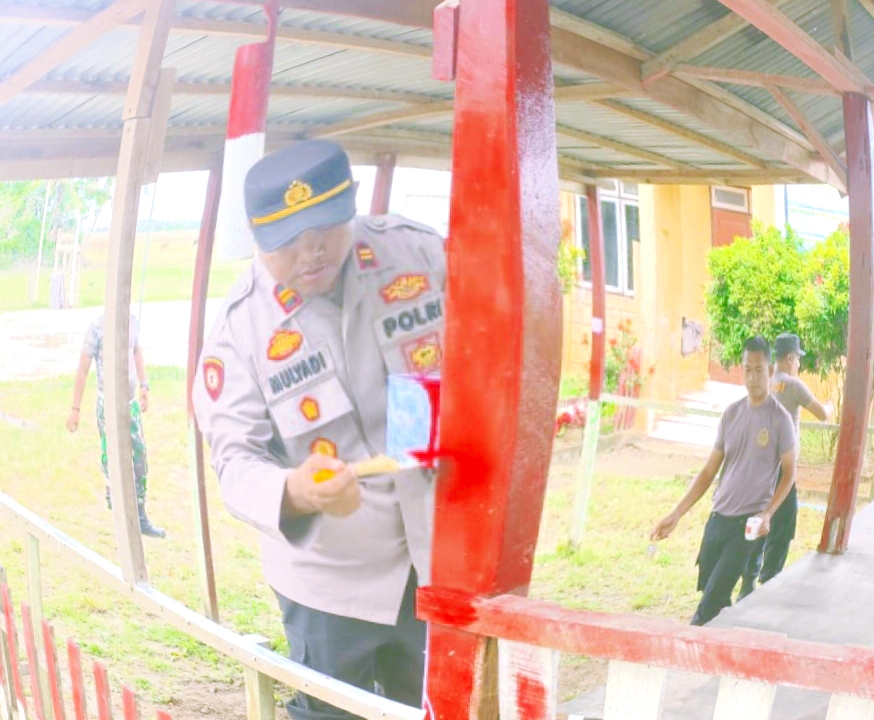 Sinergitas TNI-POLRI Polsek Nurussalam : Ajak Warga Gotong Royong Aktifkan Pos Kamling Guna Cegah Guantibmas