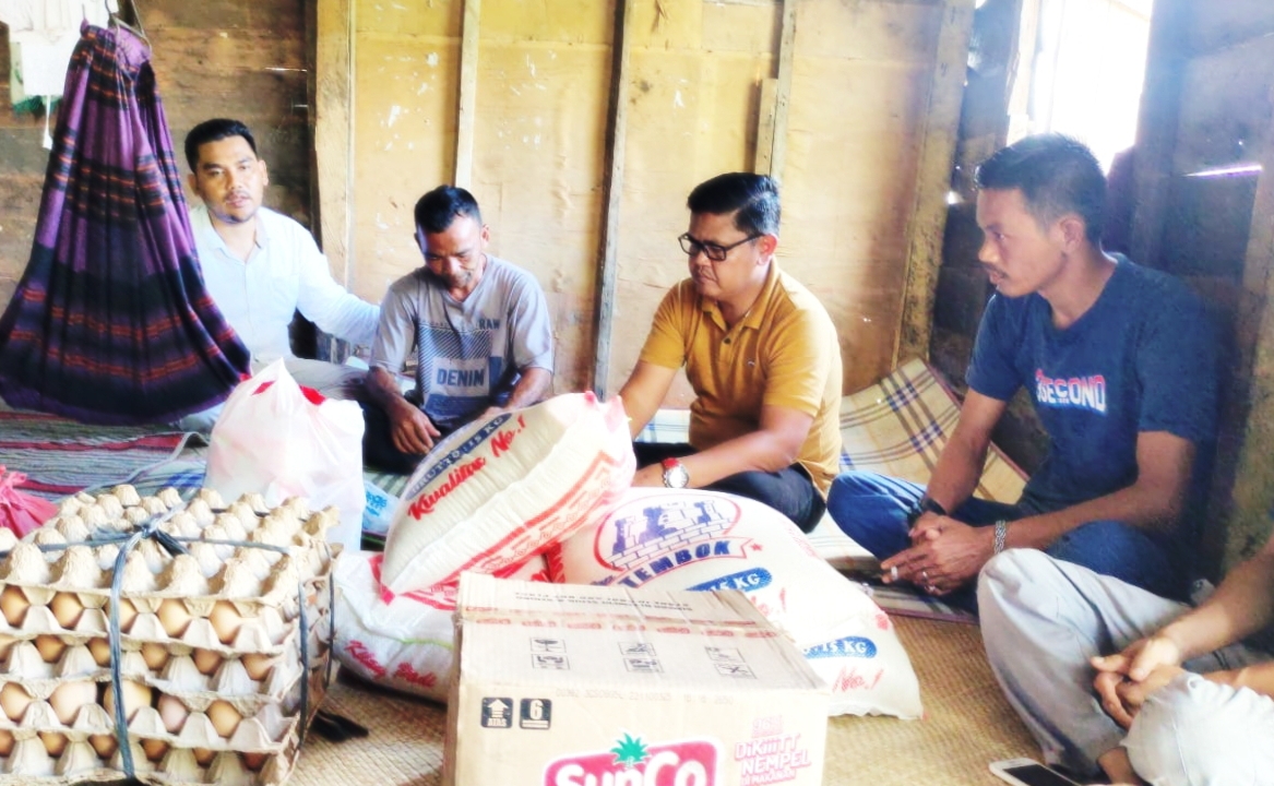 Bantuan tersebutpun diserahkan Haji Uma melalui Liaison Officer (LO) Kaya Alim dan Edi Sahputra Bako yang langsung diserahkan kepada Elek dirumahnya yang terlihat jauh dari kata Layak di Desa Suka Damai.