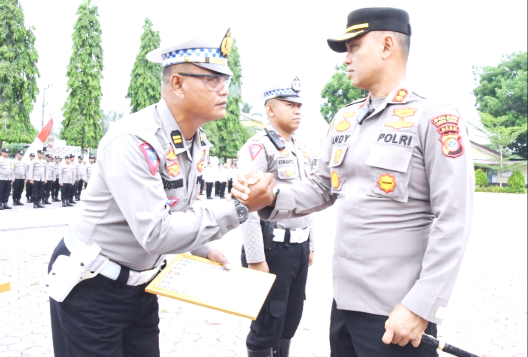 Pemberian penghargaan diserahkan langsung oleh dari Kapolres Aceh Timur AKBP Andy Rahmansyah.SIK pada saat Apel Pagi dilapangan Sarja Arya Racana, Senin (31/7/2023).