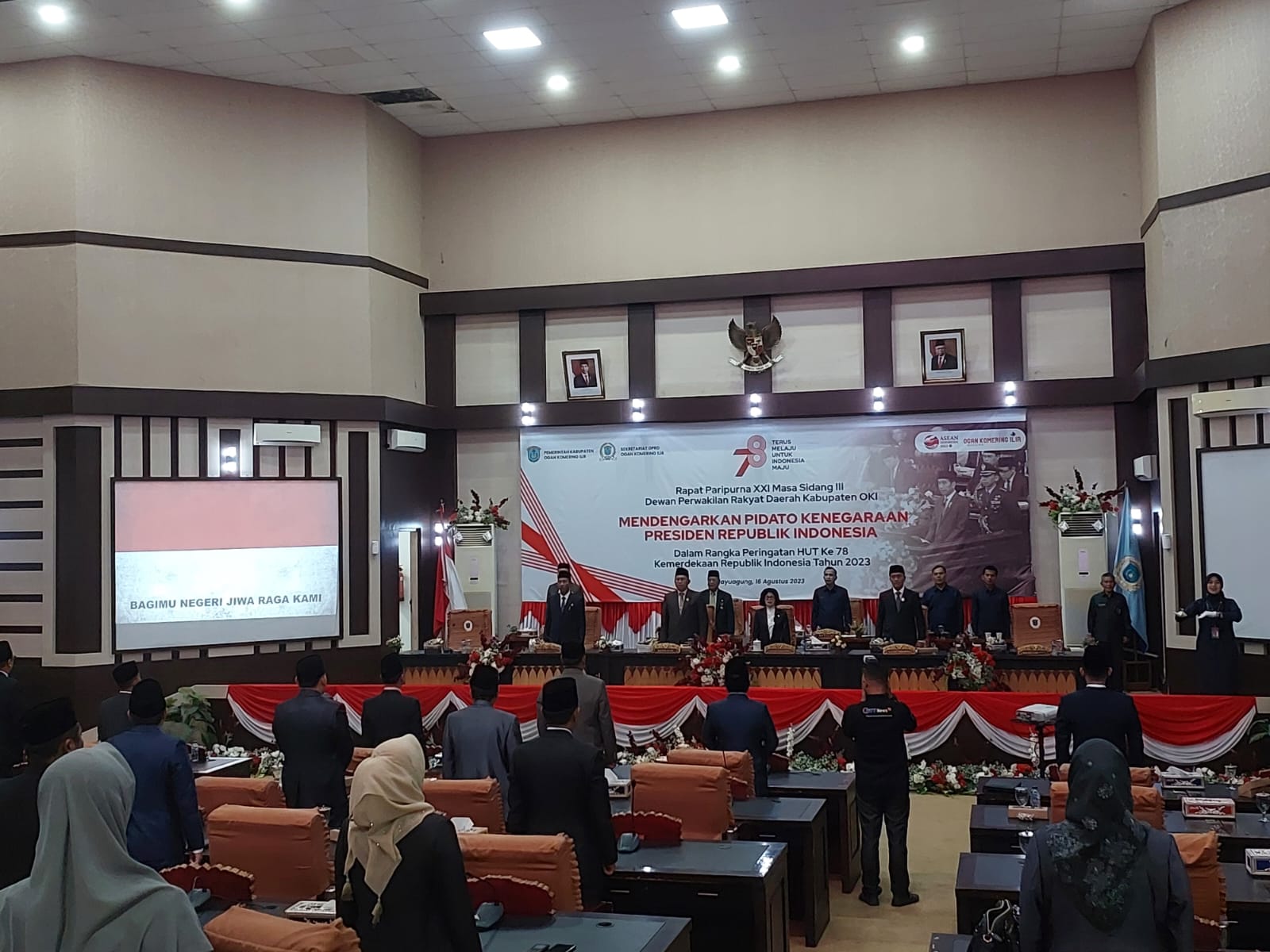 Dinastinews.com, OKI – DPRD Kabupaten Ogam Komering Ilir menggelar rapat paripurna mendengarkan pidato kenegaraan Presiden RI dalam rangka memperingati HUT ke-78 Kemerdekaan RI tahun 2023, di Gedung DPRD setempat, Rabu (16/8/2023).