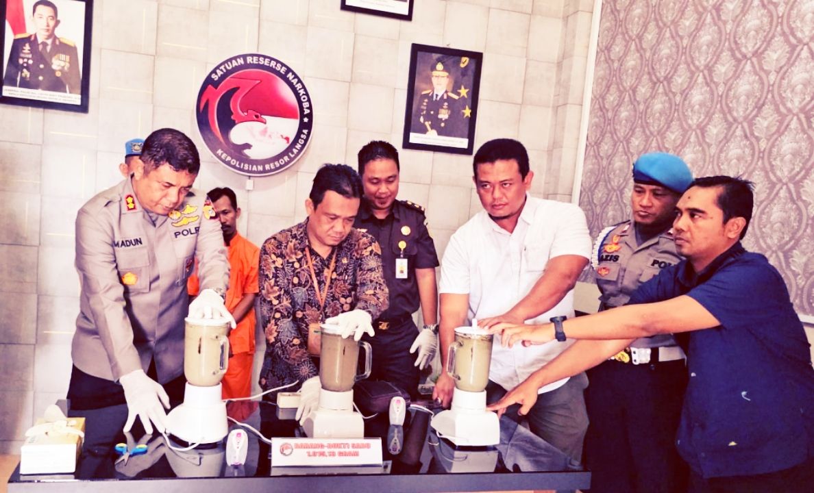 Kapolres Langsa menjelaskan V Sabu tersebut dimusnahkan dengan cara dimasukkan ke dalam alat blender, dicampurkan dengan air dan kemudian setelah diblender dituangkan kedalam ember yang berisi oli bekas.