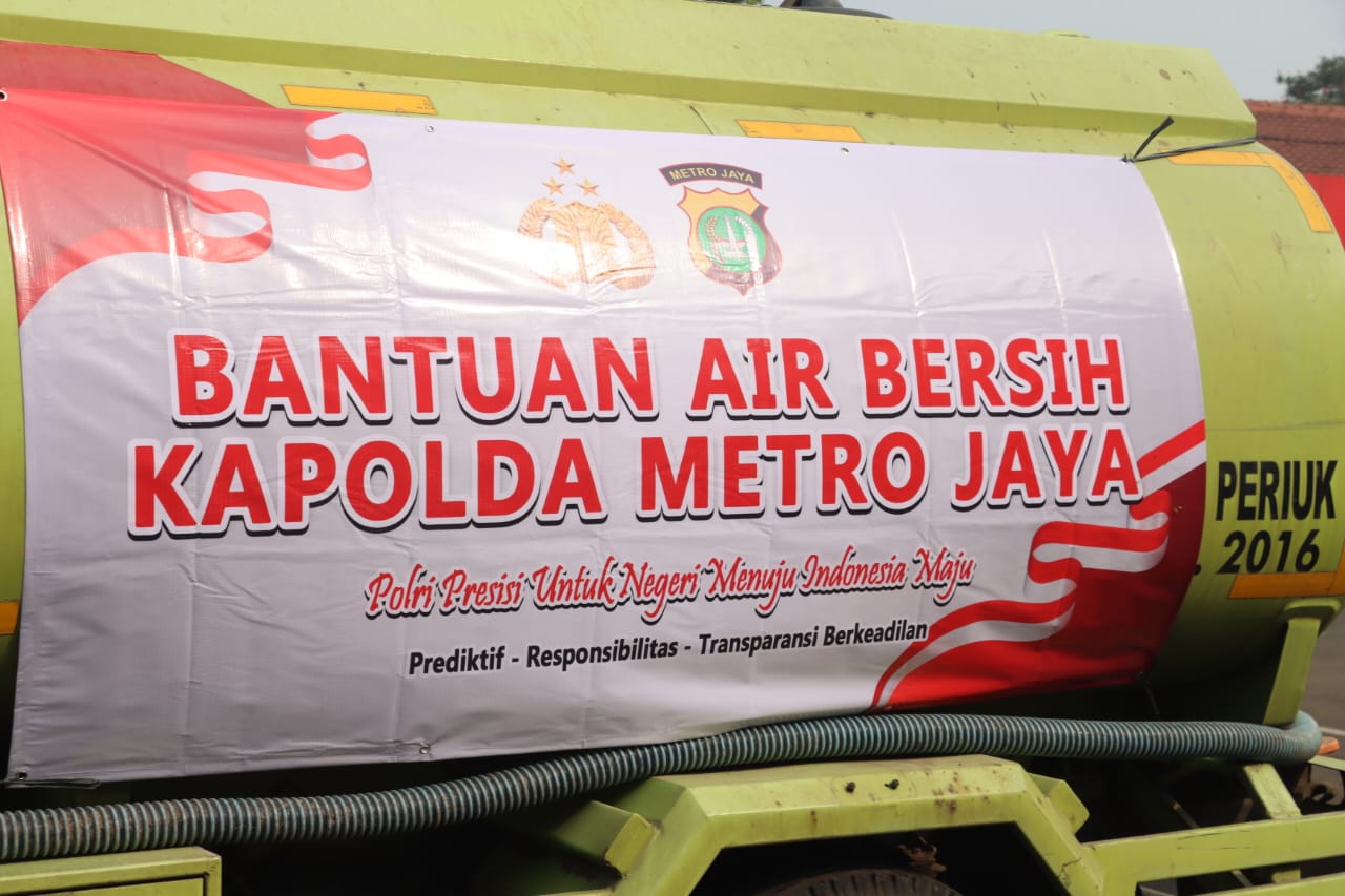 “Melihat situasi tersebut Kapolda Metro Jaya Irjen Pol Karyoto berinisiatif memberikan bantuan air bersih untuk membantu masyarakat yang membutuhkan ketersedian air bersih,” ujarnya.