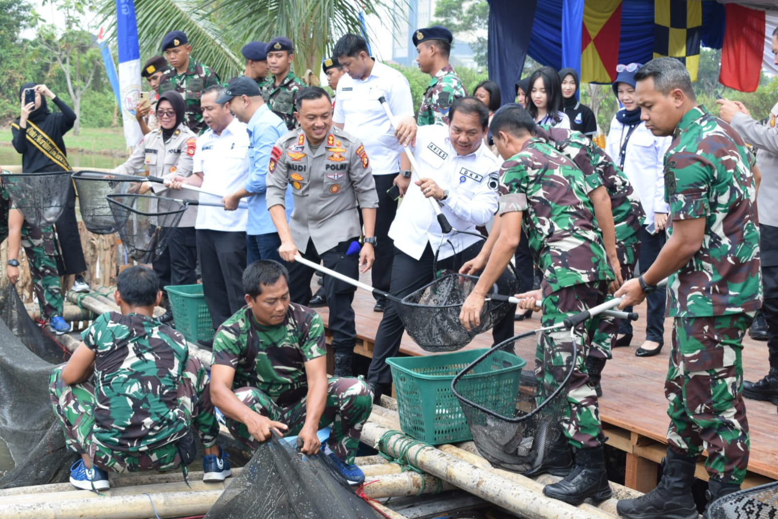 Hadir pula dalam kegiatan tersebut, Palaksa Lanal Palembang Letkol Laut (P) Yusan Taufik, Paspotmar Lanal Palembang Mayor Laut (K/W) Dewi Tresnawati, PJ. Gubernur Sumsel diwakilkan Asisten Pembangunan Ir. H. Basyarudin Akhmad, M.Sc., Pangdam II/SWJ diwakilkan Kapok Sahli Brigjend TNI Norman Saito, Kolonel Inf Edi Y., Kapolda Sumsel diwakilkan Kasubdit Patroli Polairud AKBP Budi Santosa, Danrem 044/GAPO diwakilkan Kasrem Kolonel Inf M.Thohir, S.Sos., M.M., Danlanud SMH diwakilkan Kadislog Letkol Kal Yohanes Sukendar, S.E., Dandim 0418/Palembang diwakilkan Mayor Inf Al Kahfi, Kapolrestabes Palembang diwakilkan Kasubag SDM Kompol Mariyatun, Ketua DPRD Sumsel diwakilkan Wakil Ketua I DPRD H.M. Giri N. Kiemas, S.,E., M.M., Kadis Perikanan Provinsi Sumsel Aries Irwan Wahyu, S.STPi.,M.Si., PJ. Walikota Palembang diwakilkan Asisten II Ahmad Zulinto, S.Pd., M.M., Kadis Perikanan Kota Palembang diwakilkan Romli, Camat Jakabaring diwakilkan Sekcam Adrianto, Kadis Ketahanan Pangan Provinsi Sumsel diwakilkan Ir. Rahmat Mulia Harahap MM.