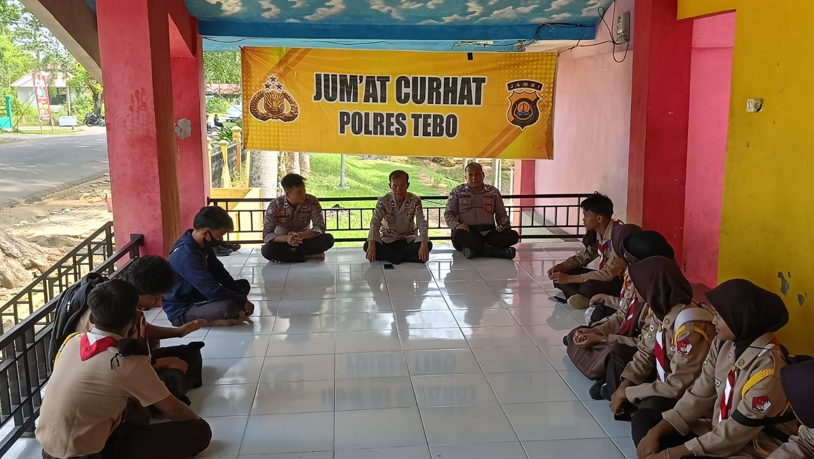 Muara Tebo, Kasat binmas Polres Tebo IPTU Edi Marali yang didampingi oleh Kanit Bin tibsos Bripka Safarudin dan personil Sat binmas Briptu A.Fauzan.S.Pd, kembali melaksanakan Jum,at curhat pukul 08.00wib, bertempat diTaman Tanggo Rajo kel.Tebo Tengah Kab.Tebo
