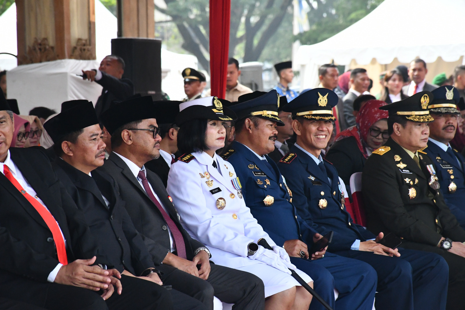 DinastiNews.com Bandung — Komandan Lanal Bandung Kolonel Laut (KH/W) Dr. Renny Setiowati, S.T., M.Sc., M.Tr.Hanla., mengikuti Upacara dan Ziarah Nasional dalam rangka Peringatan Hari Pahlawan 10 November Tahun 2003 Tingkat Provinsi Jawa Barat. Bertindak selaku Inspektur Upacara Pj. Gubernur Provinsi Jawa Barat Bey Triadi Machmudin, S.E., M.T., bertempat di Lapangan Pusat Pemerintahan Kabupaten Sumedang, Jalan Prabu Agung No. 9, Kabupaten Sumedang, Jum’at (10/11/2023).