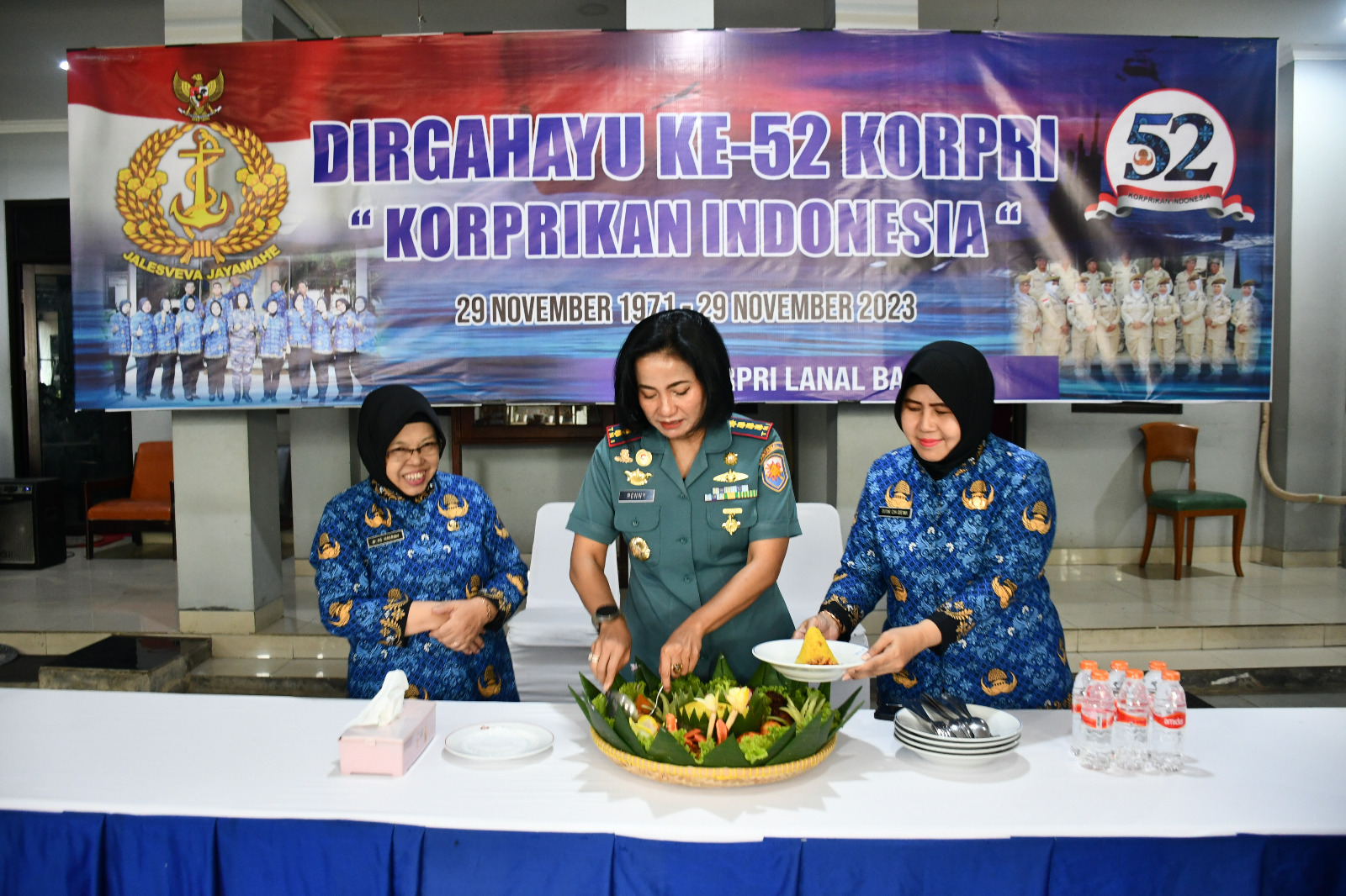 Acara dilanjutkan dengan pemotongan dan penyerahan tumpeng secara simbolis untuk memperingati HUT Ke-52 KORPRI. Hal tersebut selaras dengan salah satu program prioritas Kepala Staf Angkatan Laut (Kasal) Laksamana TNI Muhammad Ali, yakni “Jalin soliditas dengan segenap komponen pertahanan dan keamanan negara menuju sinergitas dan kesemestaan”.