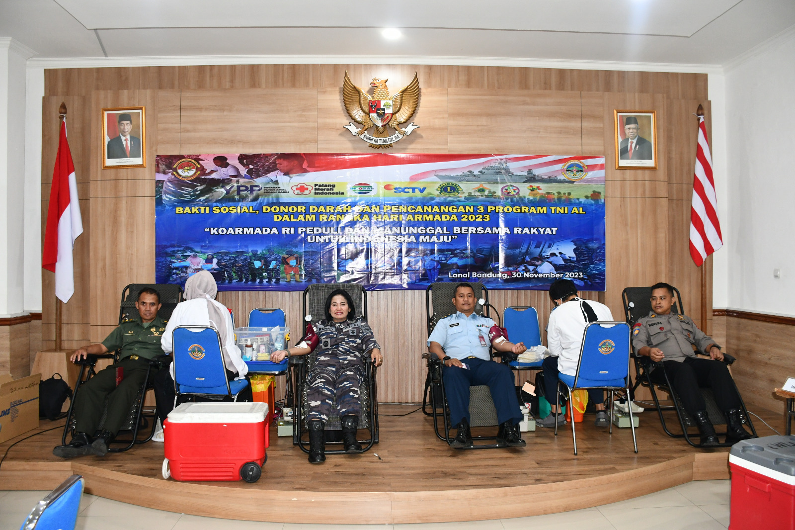 DinastiNews.com Bandung — Menjelang Hari Armada Tahun 2023, Pangkalan Angkalan Laut (Lanal) Bandung menggelar Bakti Sosial, Donor Darah dan Pencanagan 3 Program TNI AL dalam rangka Hari Armada 2023 dengan tema “Koarmada RI Peduli dan Manunggal Bersama Rakyat Untuk Indonesia Maju”, bertempat di Mako Lanal Bandung, Jalan Aria Jipang No. 8, Kota Bandung, Kamis (30/11/2023).