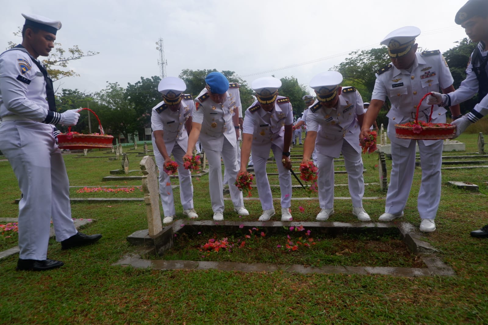 Turut hadir dalam ziarah tersebut, Palaksa Lanal Lhokseumawe, Perwira Staf, Dan/Kasatlak Lanal Lhokseumawe, Prajurit dan PNS Lanal Lhokseumawe serta Ibu-ibu Jalasenastri Cabang VI Korcab I DJA I.