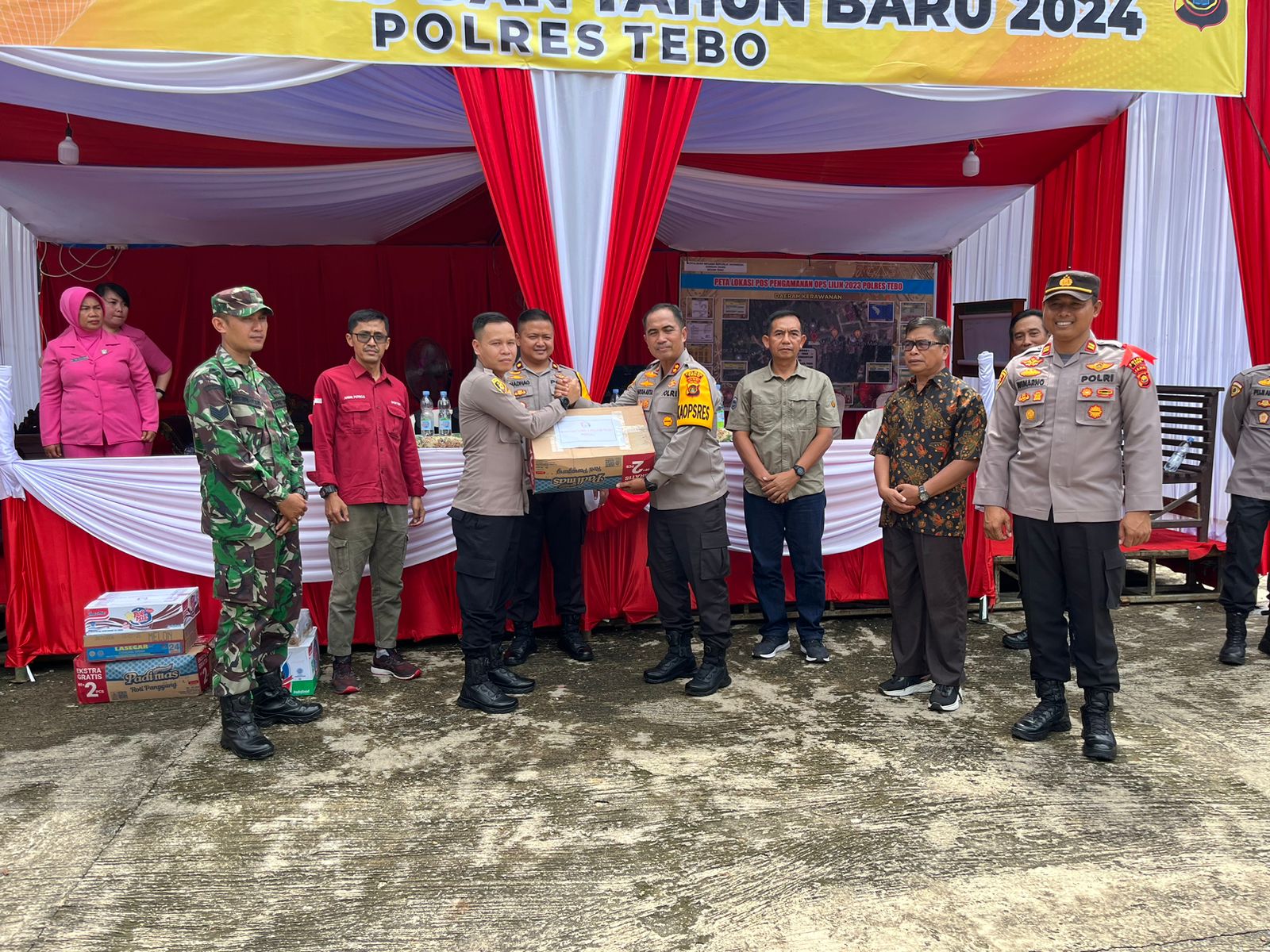 Adapun kegiatan kunjungan Kapolres Tebo beserta PJU Polres Tebo Tersebut untuk melakukan pengecekan kesiapan Pos Yan Tebo Tengah selama Hari Natal 2023 dan Tahun Baru 2024 serta Pengecekan Personil Polri yang bertugas di Pos Yan sikap Tampan yang meliputi Kerapian,kebersian Pos Yan, Adminitrasi Pos Yan seperti Buku Mutasi,Buku Supervisi dan Buku Tamu serta Tabulasi Kegiatan dan pemberian Bikisan dari Kapolres Tebo kepada personil Pos Yan.