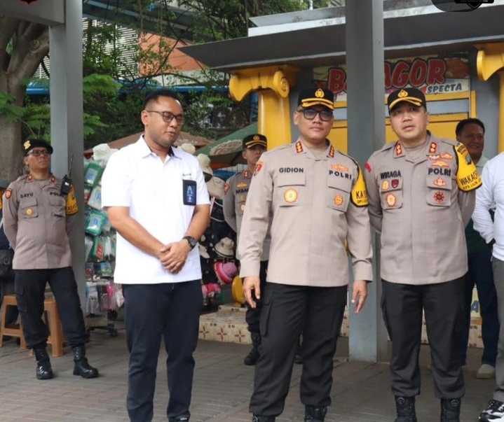 Kunjungan Kapolres Metro Jakarta Utara Kombes Pol Gidion Arif Setyawan dalam rangka pengecekan kesiapan anggota personel dalam memberikan pelayanan dan pengamanan kepada warga masyarakat terkait ” Operasi Lilin Jaya 2023″, di area Taman Impian Jaya Ancol.