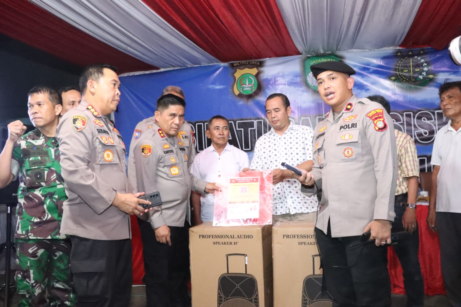 Dalam kesempatan tersebut Irjen. Pol. Karyoto, S.I.K (Kapolda Metro Jaya) dan Kombes. Pol Badya Wijaya (Dir Binmas PMJ) menyerahkan senter dan Speaker Portable secara simbolis kepada warga serta menjelaskan cara penggunaannya.
