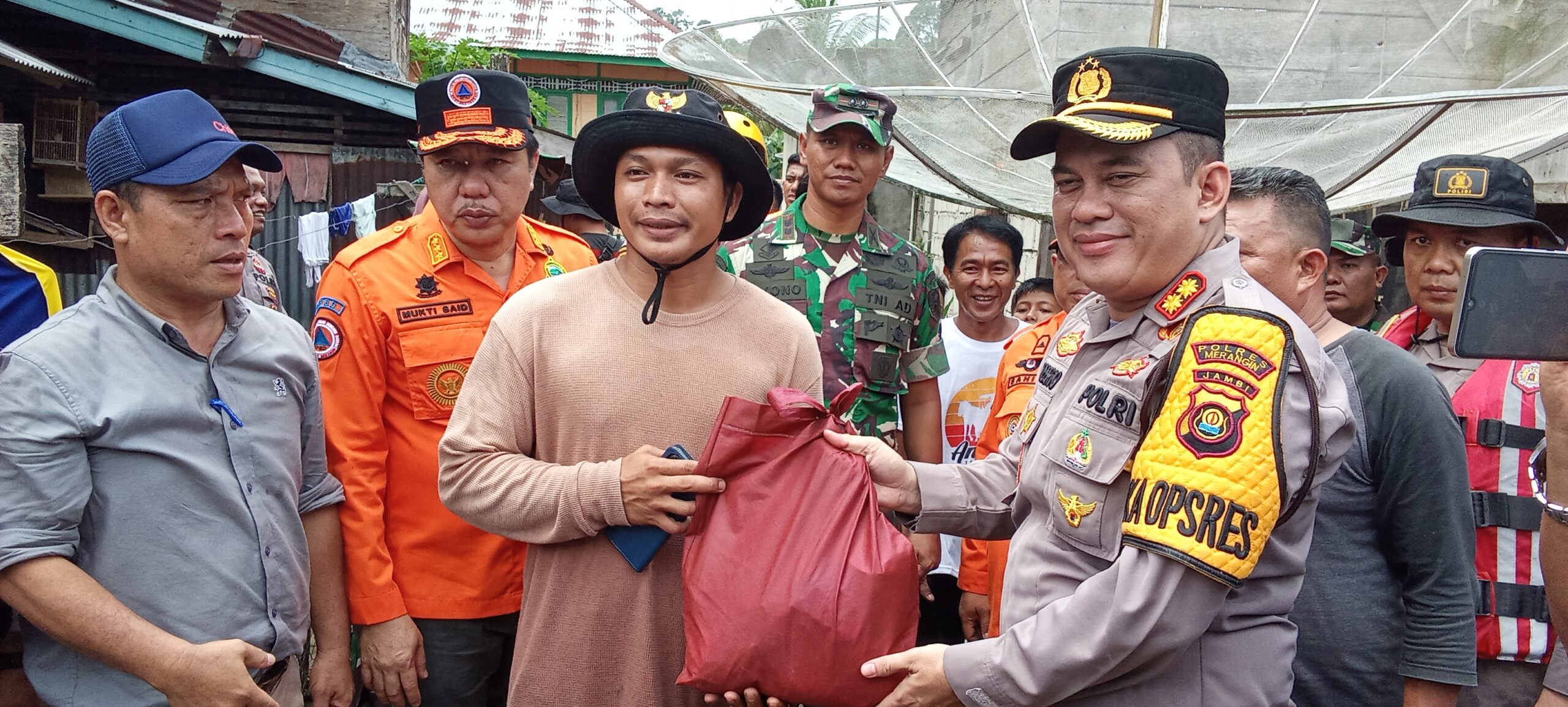AKBP. Ruri Roberto. SH. S.IK., M.M. M.Tr.SOU Kunjungi Warga Desa Kungkai Terdepak Banjir Luapan Sungai Merangin