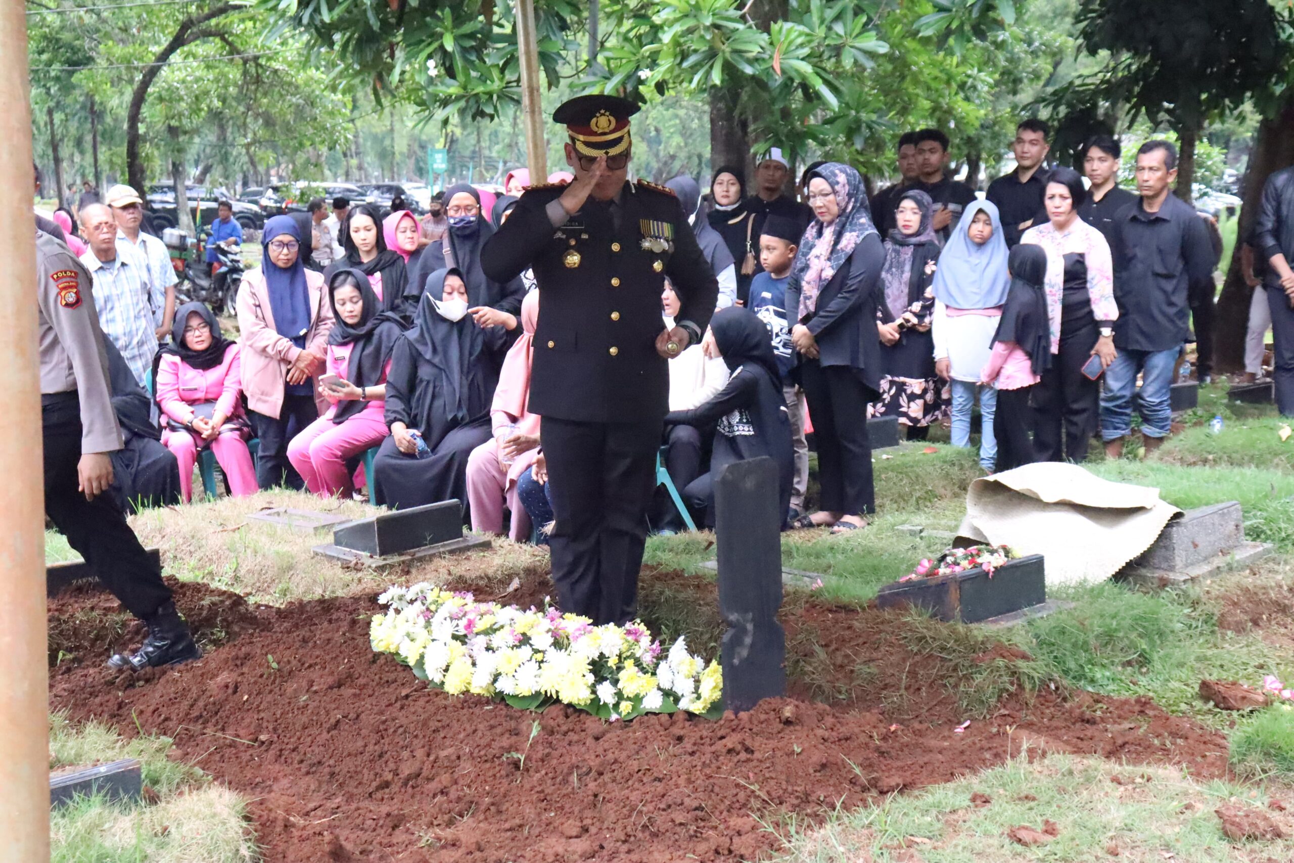 Pengajian sekaligus dilakukan sholat jenazah di Mushola Al Fatah Komplek Polri Munjul Baru.Kapolres Metro Jakarta Utara Kombes Pol Gidion Arif Setyawan pimpin selaku Inspektur upacara penyerahan pemakaman secara kedinasan, adapun sambutan pemberangkatan oleh Irup.