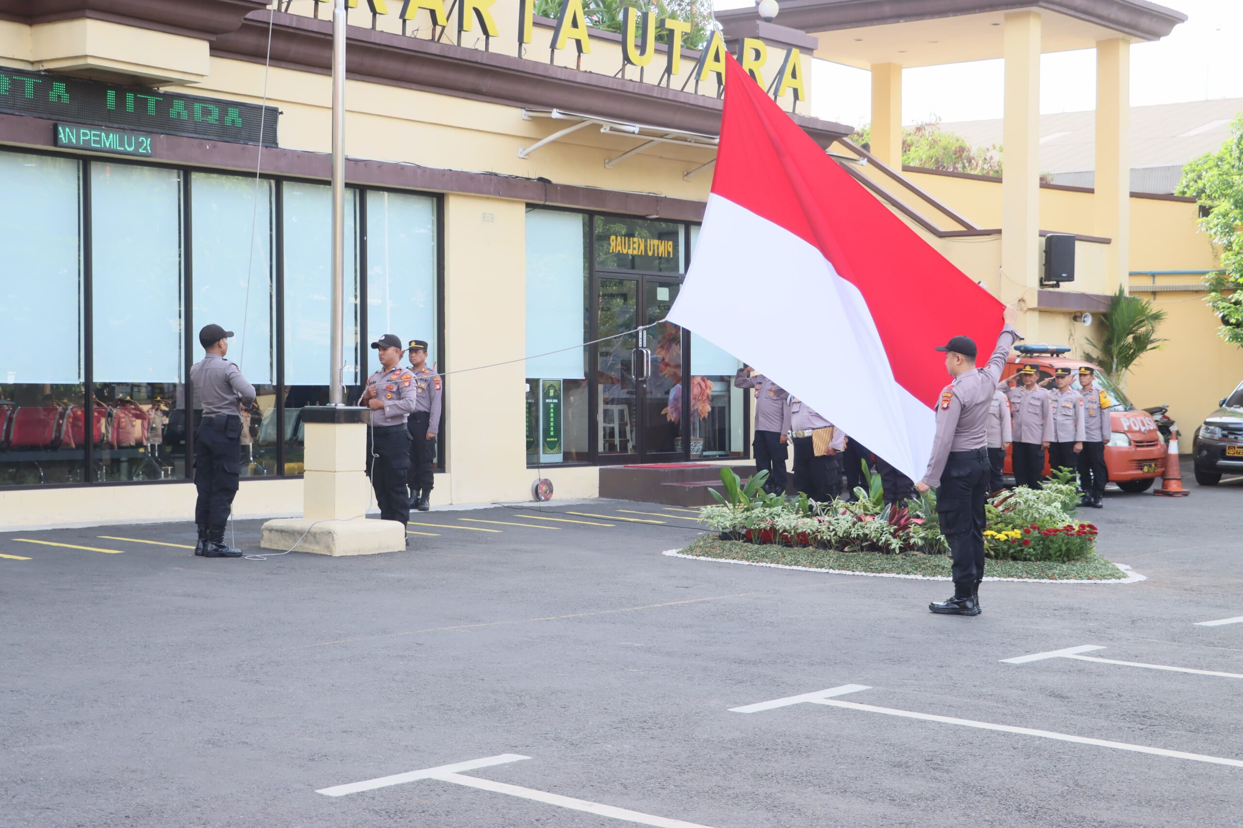 “Para peserta upacara sekalian kita patut bersyukur sejauh ini proses demokrasi yang dilaksanakan serentak di beberapa provinsi di Indonesia berlangsung teduh dan damai.Seluruh rangkaian dan jadwal kegiatan pemilu 2024 yang dilaksanakan khususnya diwilayah hukum Polres Metro Jakarta Utara berjalan dengan lancar, aman, dan tertib,” tegasnya.