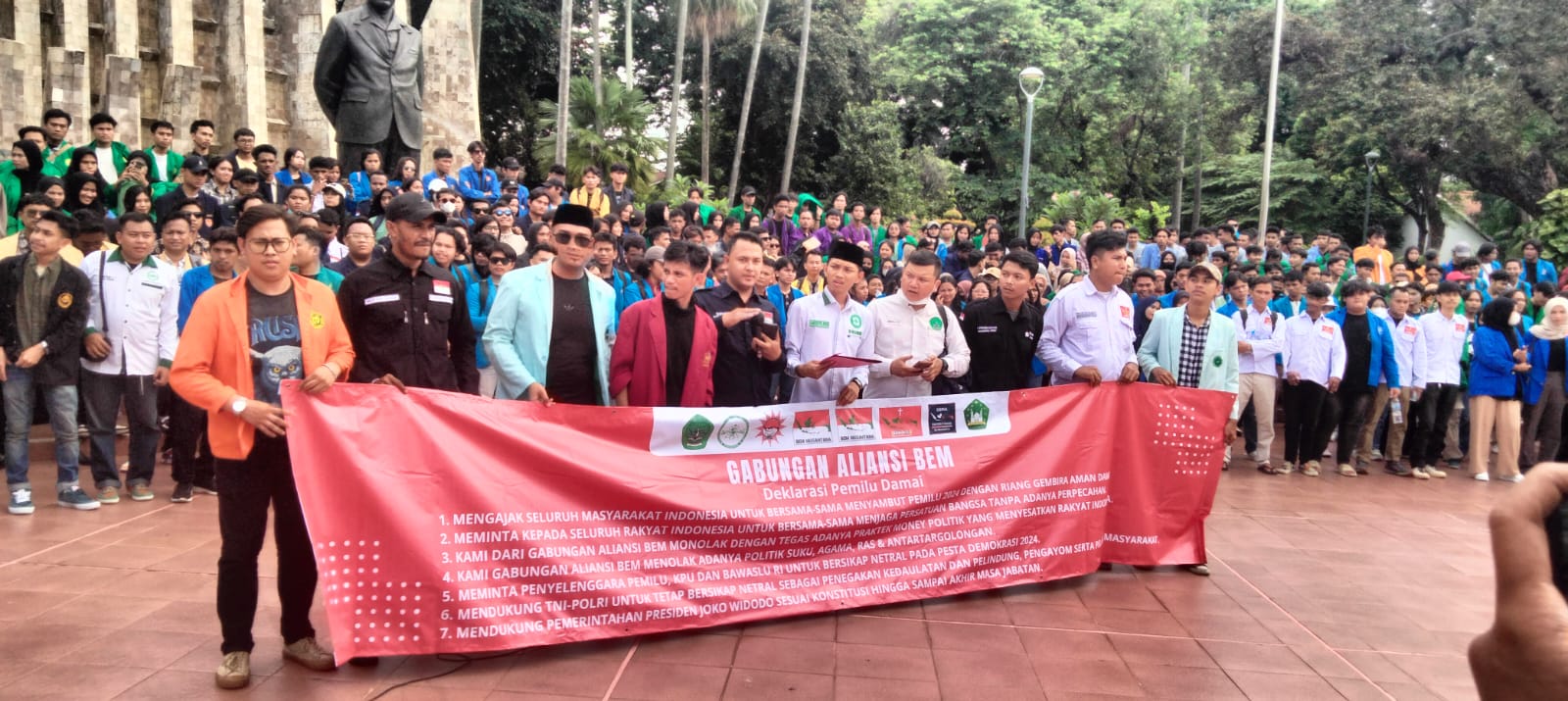 Dalam acara Gabungan Aliansi BEM Deklarasi Pemilu Damai ini mengambil tema “Wujudkan Pemilu Tahun 2024 yabg Aman dan Damai”.