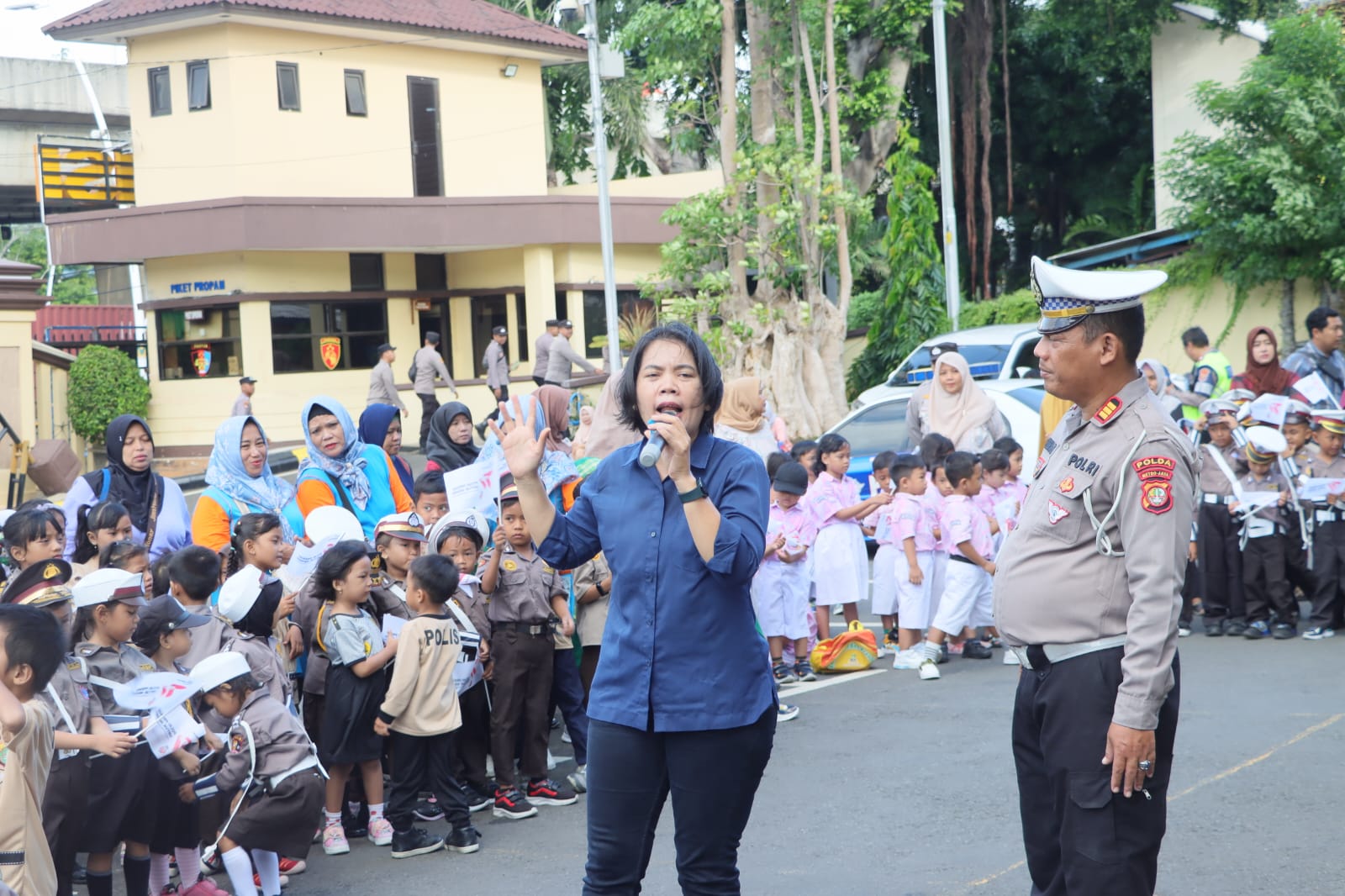 Kasat Binmas Polres Metro Jakarta Utara AKBP H. Agus Rizal,SH,M.H., memberikan pengarahan pengenalan rambu-rambu lalu lintas kepada anak-anak siswa siswi, dan mengajak bermain sambil bernyanyi dan belajar bersama.