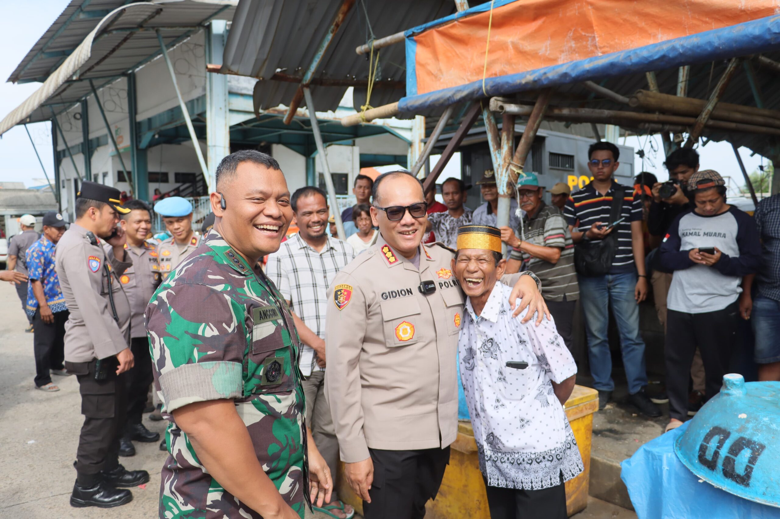 ” Kapolres Metro Jakarta Utara Kombes Pol Gidion Arif Setyawan didampingi Dandim 0502/JU Letkol Kav Tofan Tri Anggoro BS bersama Kapolsek Penjaringan Kompol Agus Ady Wijaya menyapa warga Nelayan.
