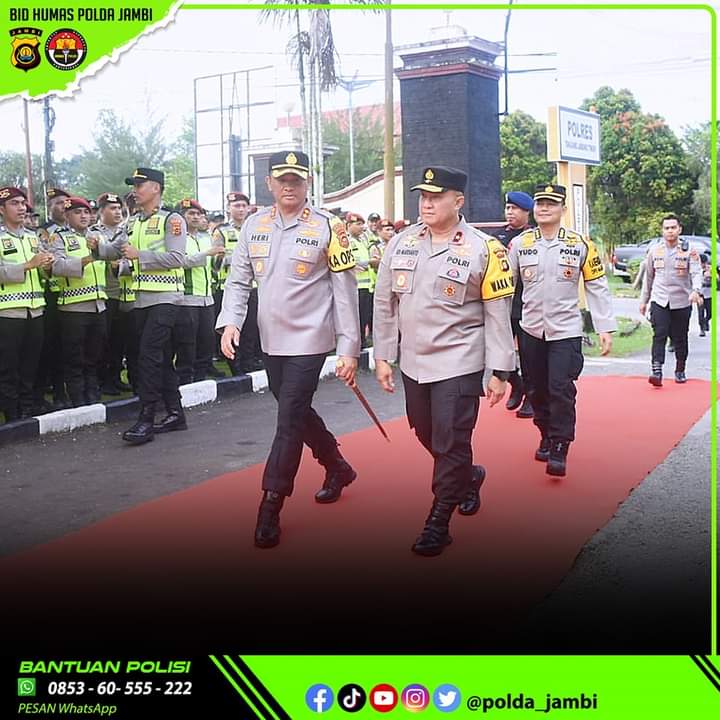 Kedatangan Wakapolda Jambi Brigjen Pol. Edi Mardianto turut didampingi Karo Ops Kombes Pol Yudo Nugroho, Dir Samapta Kombes Pol Yohanes Wong Niti KN, Dansat Brimob Kombes Pol Nadi Chaidir, Kabid Humas Polda Jambi Kombes Pol. Mulia Prianto disambut langsung Kapolres Tanjab Timur AKBP Heri Supriawan,bersama Waka Polres Kompol Noprizal, Para PJU, Kapolsek Jajaran, PA Staf, Brigadir dan ASN.