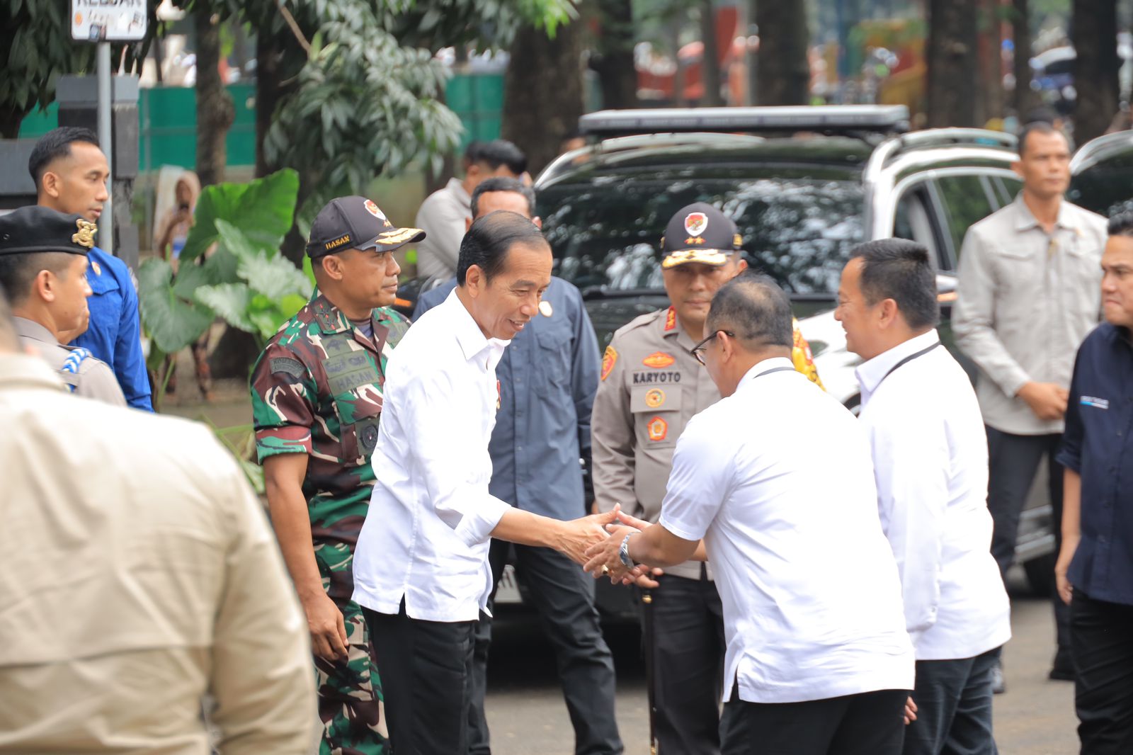 Pj. Wali Kota Bekasi, Gani Muhamad menyambut langsung Kedatangan Presiden Joko Widodo bersama Menteri BUMN Erick Thohir, Menteri Perdagangan Zulkifli Hasan, Direktur Utama Pemodalan Nasional Madani (PNM) Arief Mulyadi, dan Pj. Gubernur Jawa Barat Bey Machmudin.