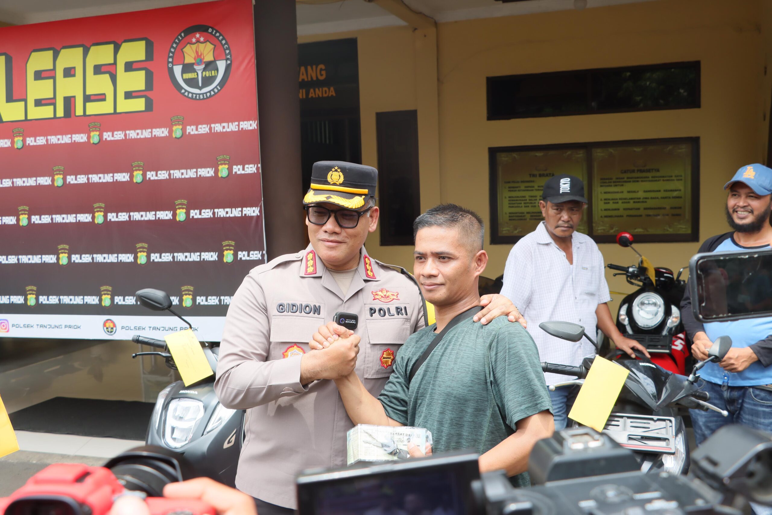 Seorang pedagang bernama Iwan Yulianto yang kehilangan motornya, mengucapkan terimakasih atas kinerja anggota Polsek Tanjung Priok yang telah menemukan sepeda motornya.