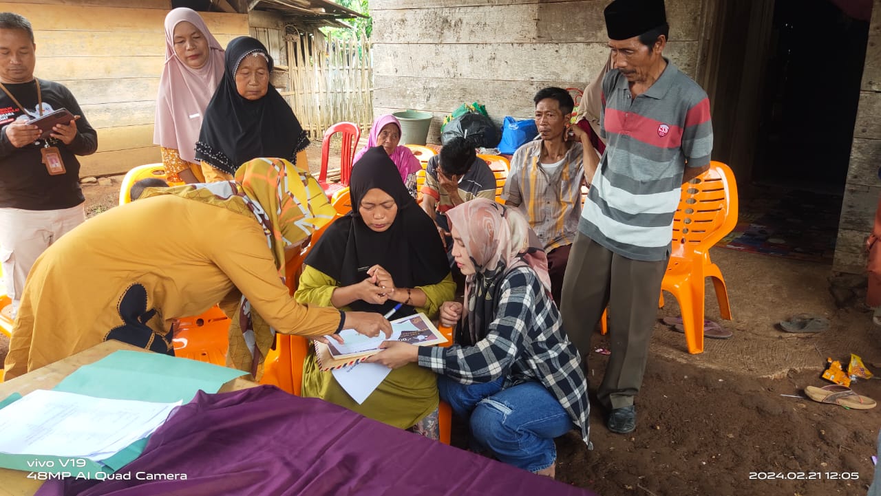 Prosesi penyerahan santunan kepada ahli waris Almarhum Nizar Efendi, yang merupakan anggota KPPS di TPS 6, Pekon Datar Lebuay, Kecamatan Air Naningan, Kabupaten Tanggamus, diterima langsung oleh Istri Almarhum, Listriani, dan disaksikan oleh PPK, PPS serta aparat Pekon Datar Lebuway.