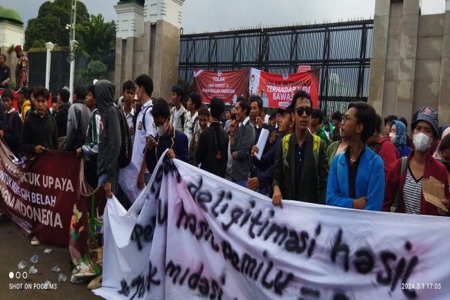 “Kita pelajar dan gerakan aliansi mahasiswa di sini menolak hak angket dan pemakzulan presiden,” ujarnya.