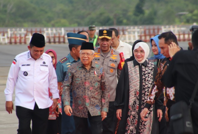DinastiNews.Com|Batam Kapolda Kepri Irjen. Pol. Drs. Yan Fitri Halimansyah, M.H., sambut kedatangan Bapak Wakil Presiden RI, Prof. Dr. H.C. K.H. Ma’ruf Amin dan Ibu Wakil Presiden RI Hj. Wury Ma’ruf Amin beserta rombongan dalam rangka kunjungan kerja di Kota Tanjung Pinang, Provinsi Kepulauan Riau. Kamis (14/3/2024).