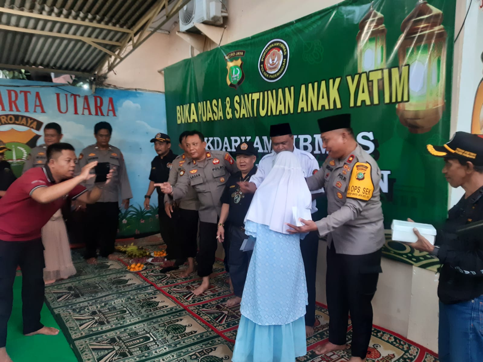 Dalam kegiatan momen buka puasa bersama dan santunan anak Yatim yang diselenggarakan Polsek Pademangan dan bekerjasama dengan Pokdar Kamtibmas .