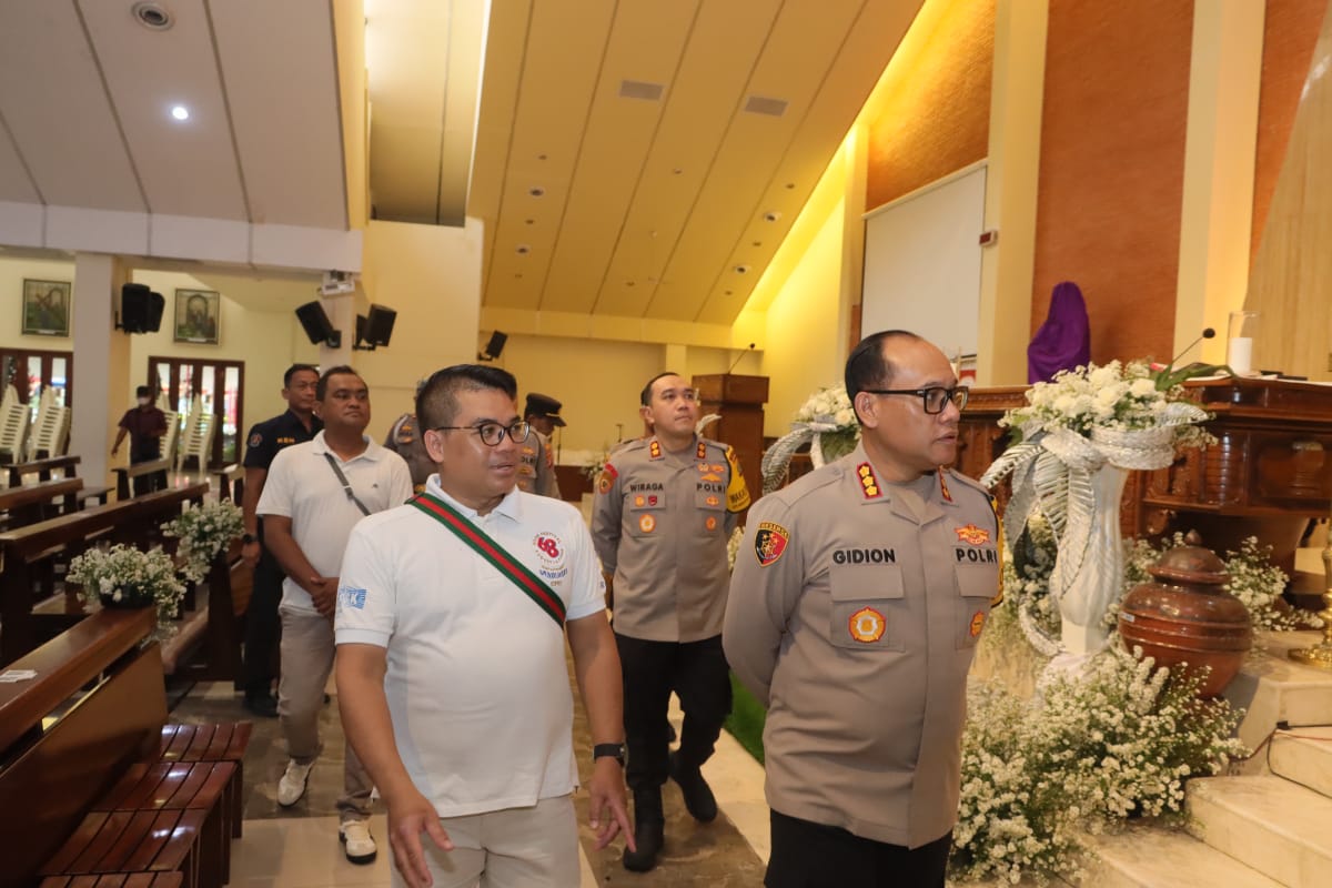 DinastiNews.com Jakarta — Kapolres Metro Jakarta Utara Kombes Pol. Gidion Arif Setyawan S.I.K, S.H didampingi oleh Wakapolres Metro Jakarta Utara AKBP Wiraga Dimas Tama, S.I.K, M.Si, Kasat Intelkam Polres Metro Jakarta Utara AKBP Ananto Herlambang, S.I.K, M.M serta anggota Polres Jajaran melakukan pengecekan di beberapa Gereja di wilayah hukum Jakarta Utara. Kamis (28/03/24)