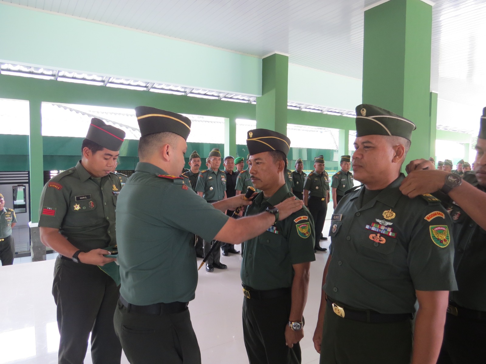 Saya ucapkan selamat kepada para prajurit yang naik pangkat, syukuri kenaikan pangkat ini dengan penuh semangat dan ketaqwaan, karena pangkat dan jabatan yang kita raih, pada hakikatnya merupakan anugerah, yang didalamnya termasuk amanah yang harus diperjuangkan, baik kepada diri sendiri, kepada Negara, terlebih kepada Tuhan Yang Maha Kuasa,” pungkas Dandim.