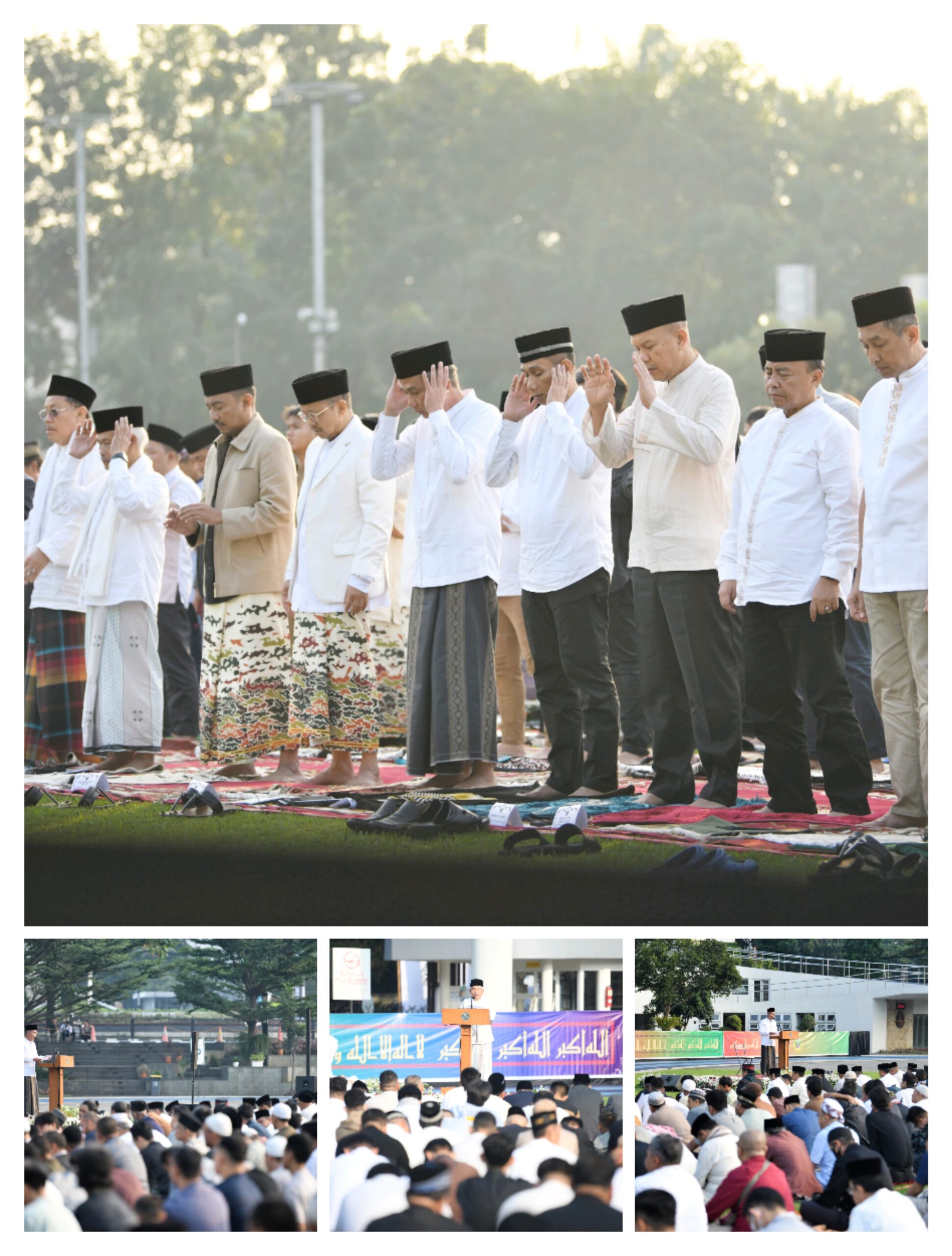 KOTA BANDUNG – Penjabat Gubernur Jawa Barat Bey Machmudin melaksanakan salat Idulfitri di Lapangan Gasibu, Kota Bandung, Rabu (10/4/2024).