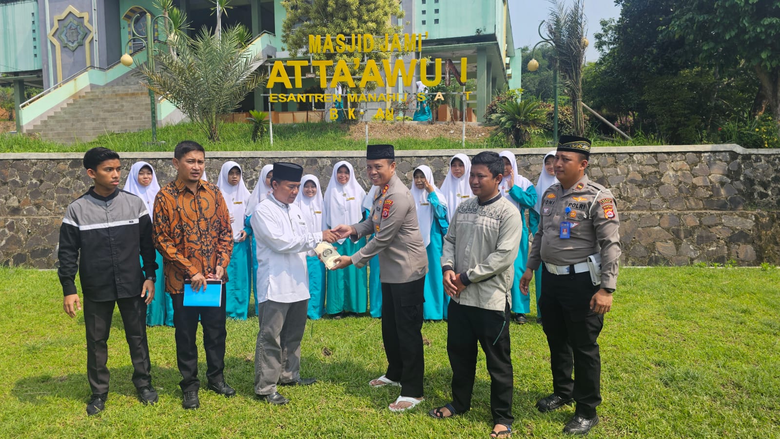 Hadir dalam kegiatan tersebut Kapolres Lebak AKBP Suyono, S.I.K. didampingi Kanit Regident Satlantas Polres Lebak IPDA Toni Sumartanto, S.H., Ust. Yudi (Dewan Guru), Ust. Taufik Zarkasih (Dewan Guru), Ust. Tatang (Dewan Guru), Ust. Habibi (Dewan Guru) dan Santriwati Ponpes Manahijussadat.