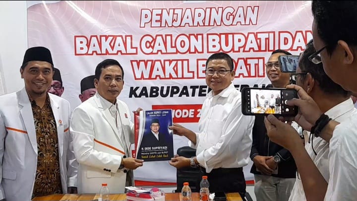 dinastinews.com – H. Dede Supriyadi, salah satu Bakal Calon Bupati (Bacabup) Lebak lakukan pengambilan formulir pendaftaran ke Dewan Pimpinan Daerah Partai Keadilan Sejahtera (DPD-PKS) yang bertempat di Kampung Cempa, Desa Cilangkap, Kecamatan Kalanganyar, Kabupaten Lebak, Banten, pada Selasa, 4 Juni 2024.