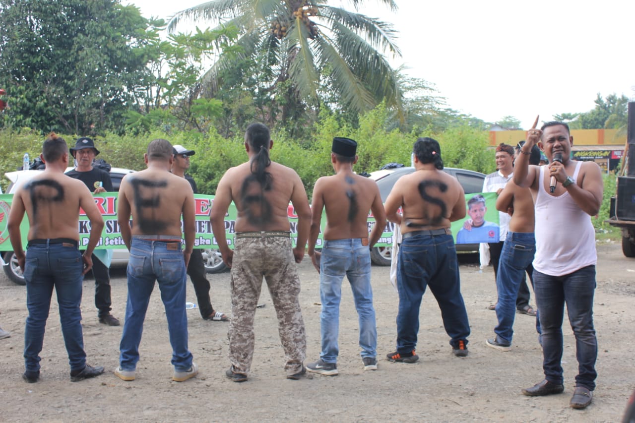 Selain itu massa juga melakukan aksi telanjang dada dengan di tuliskan nama Pegi menggunakan Pilok di bagian punggung.