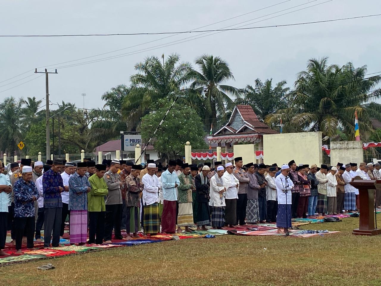 Kemarau panjang menyebabkan kekeringan dimana mana Warga Kel.Sungai Bengkal Kec.Tebo Ilir mengadakan Sholat Istisqo (Sholat Minta Hujan) di Lapangan Mapolsek Tebo Ilir sekira Pukul 07.30 wib, Ka mis( 01/08/2024)