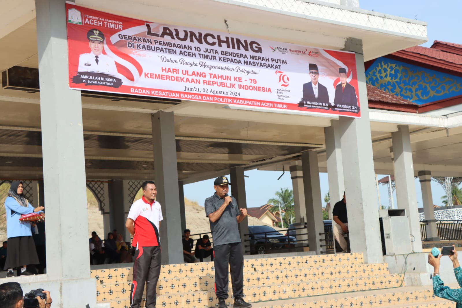 Dalam rangka menyongsong Hari Ulang Tahun ke-79 Kemerdekaan Republik Indonesia tahun 2024, Pemerintah Kabupaten Aceh Timur mencanangkan Gerakan Pembagian 10 juta Bendera Merah Putih, yang dilaksanakan di Lapangan Upacara Pemerintah Kabupaten Aceh Timur pada hari Jum’at, (02/08/2024) pagi.