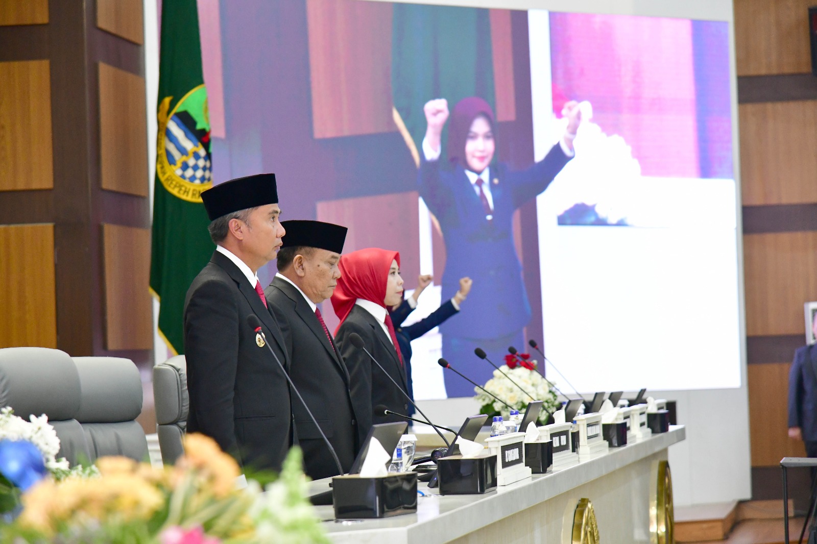 Dinastinews.com, KOTA BANDUNG – Penjabat Gubernur Jawa Barat Bey Machmudin bersama para kepala perangkat daerah dan anggota DPRD Jabar mendengarkan pidato kenegaraan Presiden RI dalam rangka HUT ke – 79 Republik Indonesia, di Gedung DPRD Jabar, Jumat (16/8/2024).