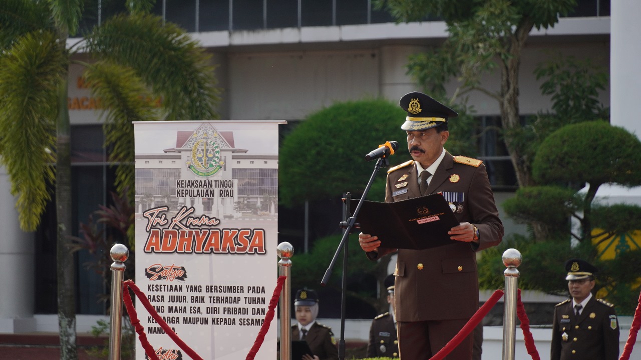 Wakajati Kepri Sufari, S.H., M.Hum., membacakan amanah Jaksa Agung Republik Indonesia pada Upacara Peringatan Hari Kemerdekaan Republik Indonesia Ke-79 Tahun 2024 dengan Tema “Nusantara Baru Indonesia Maju”. Tema ini mencerminkan semangat dan tekad bangsa Indonesia dalam menghadapi tantangan masa depan serta mengajak seluruh rakyat Indonesia untuk melanjutkan pembangunan dengan penuh semangat untuk saling bekerja sama, berkolaborasi, dan bersinergi untuk mencapai tujuan bersama. Semangat yang muncul dalam Tema Besar tersebut menggambarkan visi pembangunan Indonesia di masa depan yang lebih modern dan maju, namun tetap mempertahankan kekayaan budaya dan identitas bangsa Indonesia.