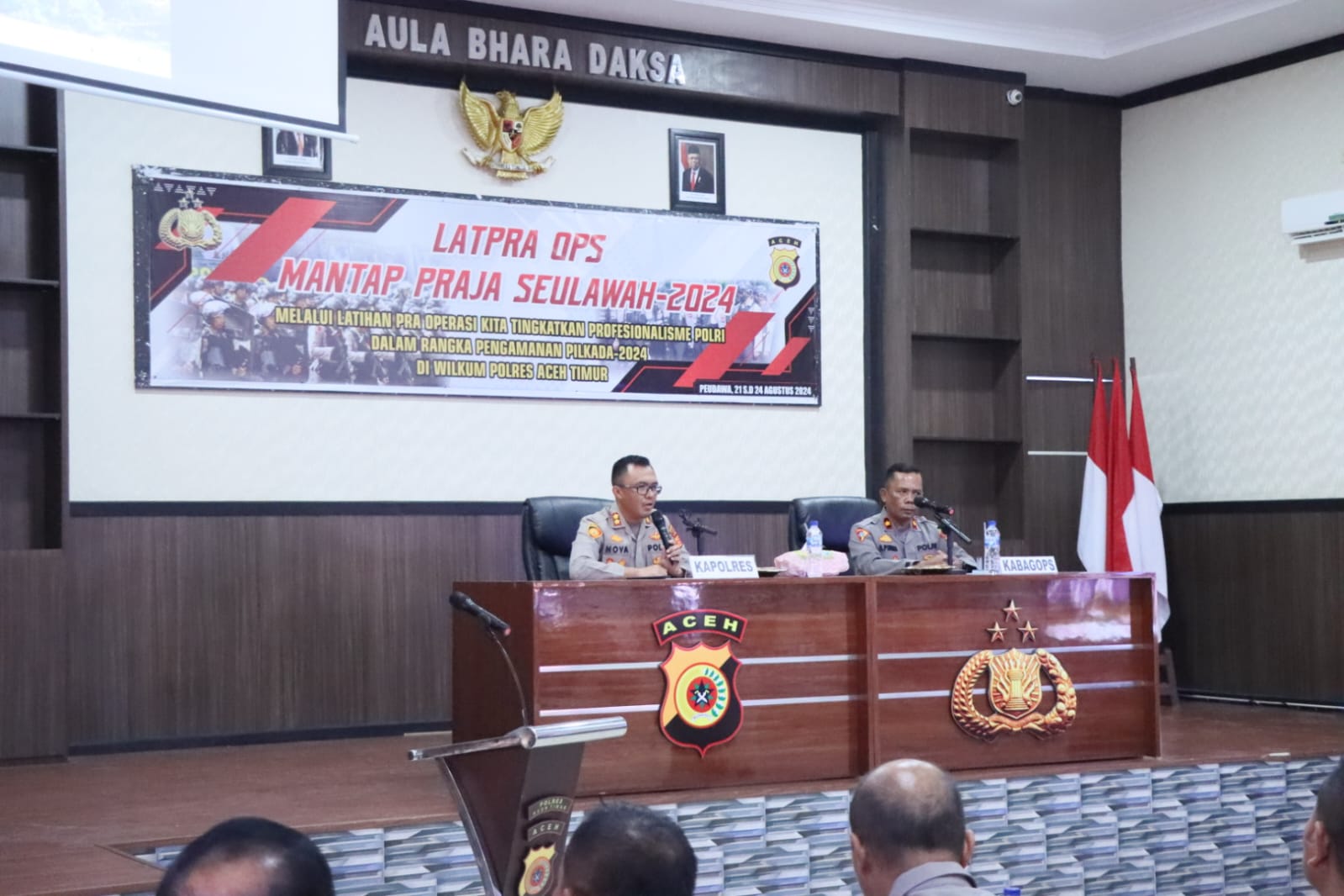 Guna meningkatkan kesiapan pengamanan menjelang Pilkada Serentak Tahun 2024, Polres Aceh Timur, Polda Aceh menggelar Latihan Pra Operasi (Latpra Ops) Mantap Praja Seulawah 2024 dengan tema; Melalui Latihan Pra Operasi Kita Tingkatkan Profesionalisme Polri Dalam Rangka Pengamanan Pilkada 2024 di Wilayah Hukum Polres Aceh Timur bertempat di Aula Bhara Daksa, Kamis, (22/08/2024) pagi.