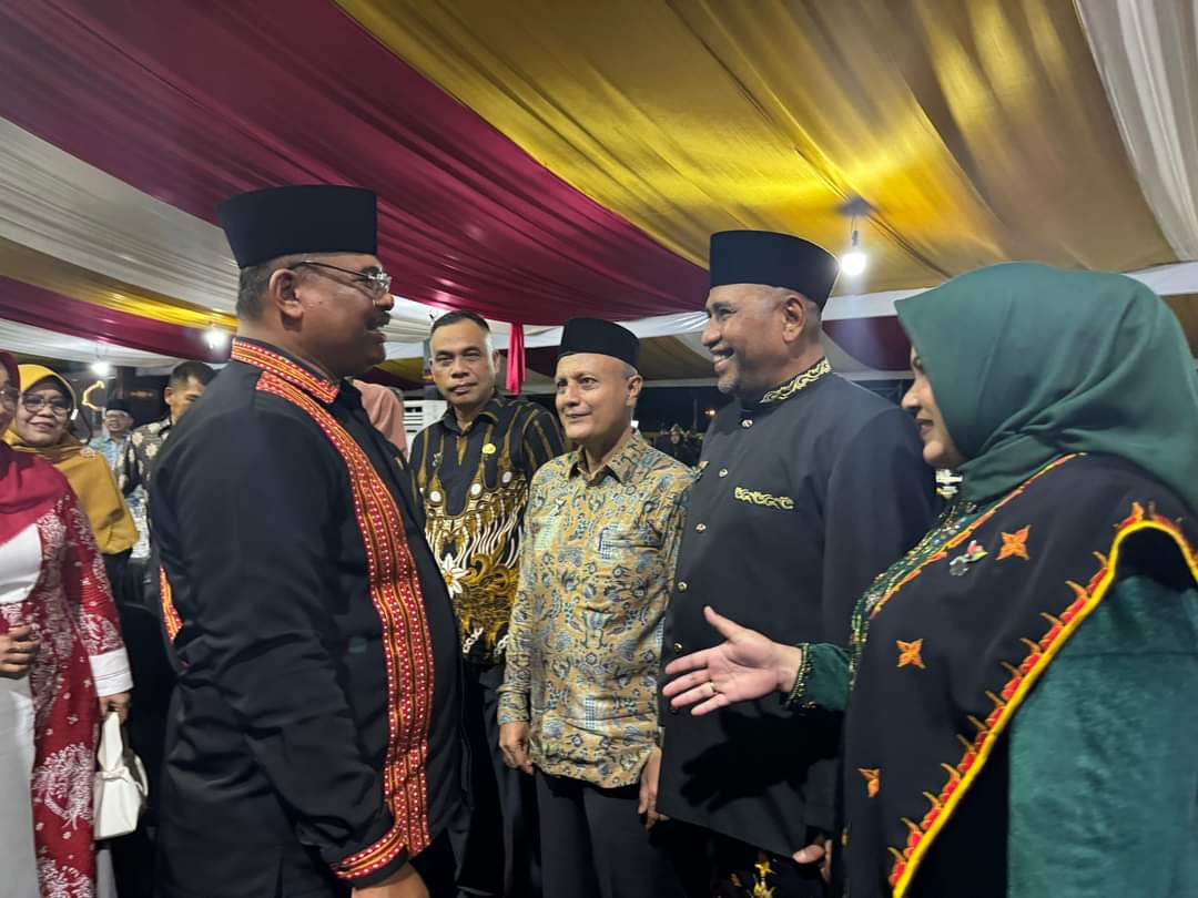 Banda Aceh — Pj. Bupati Aceh Timur Amrullah M. Ridha bersama Istri Ny. Hikmatul Farha Amrullah dan unsur Forkompinda serta Istri menghadiri acara Gala Dinner ( Khan Duri Raya) PON XXI yang di helat di Taman Ratu Safiatuddin, Banda Aceh, Minggu,( 08 /09), malam.