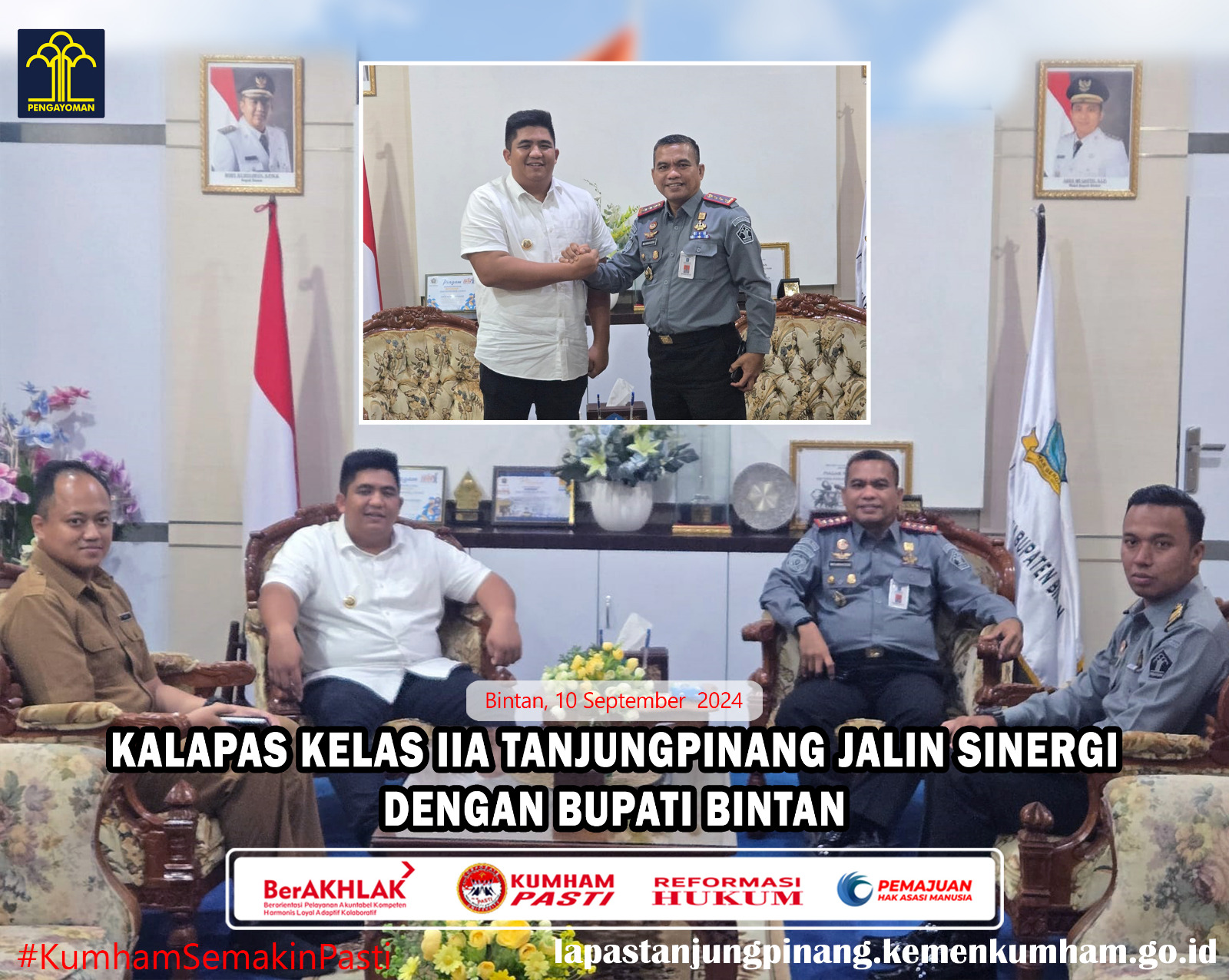 Dinastinews.com|Bintan (10/09) – Lembaga Pemasyarakatan (Lapas) Kelas IIA Tanjungpinang Kanwil Kemenkumham Kepri terus bangun sinergi dengan instansi pemerintah lainnya. Kepala Lapas Kelas IIA Tanjungpinangn, Mishbahuddin, melakukan kunjungan silaturahmi dengan Bupati Bintan, Roby Kurniawan, Selasa (10/09/2024).