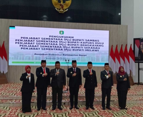 Pj Gubernur Kalbar dr. H. Harrison, M. Kes., mengukuhkan 5 Penjabat Sementara (Pjs) Bupati untuk 5 Kabupaten di Kalbar. Pengukuhan tersebut dilaksanakan di Balai Petitih Kantor Gubernur Kalimantan Barat, Selasa.24/9/.2024