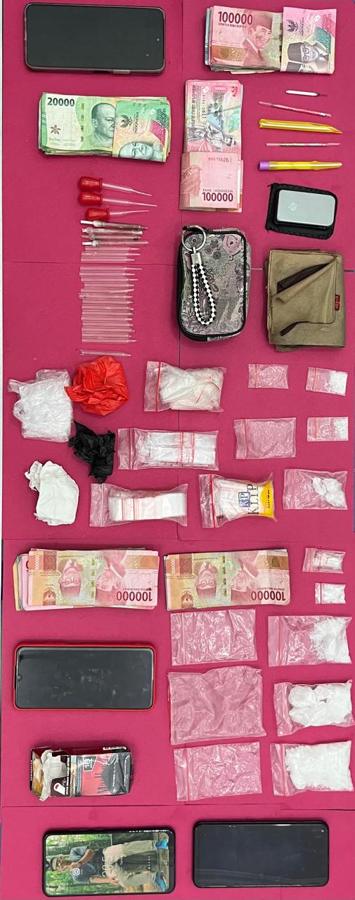 Barang bukti yang disita dari para tersangka meliputi dua paket besar sabu-sabu, satu paket sedang, dan empat paket kecil. Selain itu, polisi juga mengamankan 25 pirek kaca, beberapa plastik klip baru dan bekas, timbangan digital, uang tunai sejumlah Rp 5.793.000, dan beberapa unit telepon genggam. Ketiga tersangka diduga kuat merupakan bagian dari jaringan peredaran narkoba di wilayah Tebo.