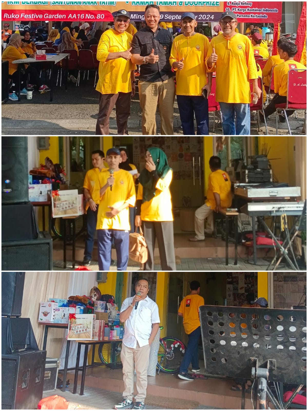 Menariknya, acara ini juga tidak luput dari sentuhan kegiatan berbagi yang bertujuan untuk memberikan manfaat yang lebih luas kepada masyarakat sekitar. Dukungan dari berbagai pihak seperti RM. Pangeran Mudo, Cafe dan Boutique Rohah, PT. Rayana Fazza Utama, PT. Delvi Primatama, PT. Flamboyan Jaya Persada, Jalan Sehat, PT. Ranah Multi Semesta, PT. Alkhair Global Utama, Solution Quick Service, Radja Refleksi, PT. Kargo Kontainer Indonesia, dan PT. Purnama Kertasindo benar-benar menjadi tonggak keberhasilan acara ini.