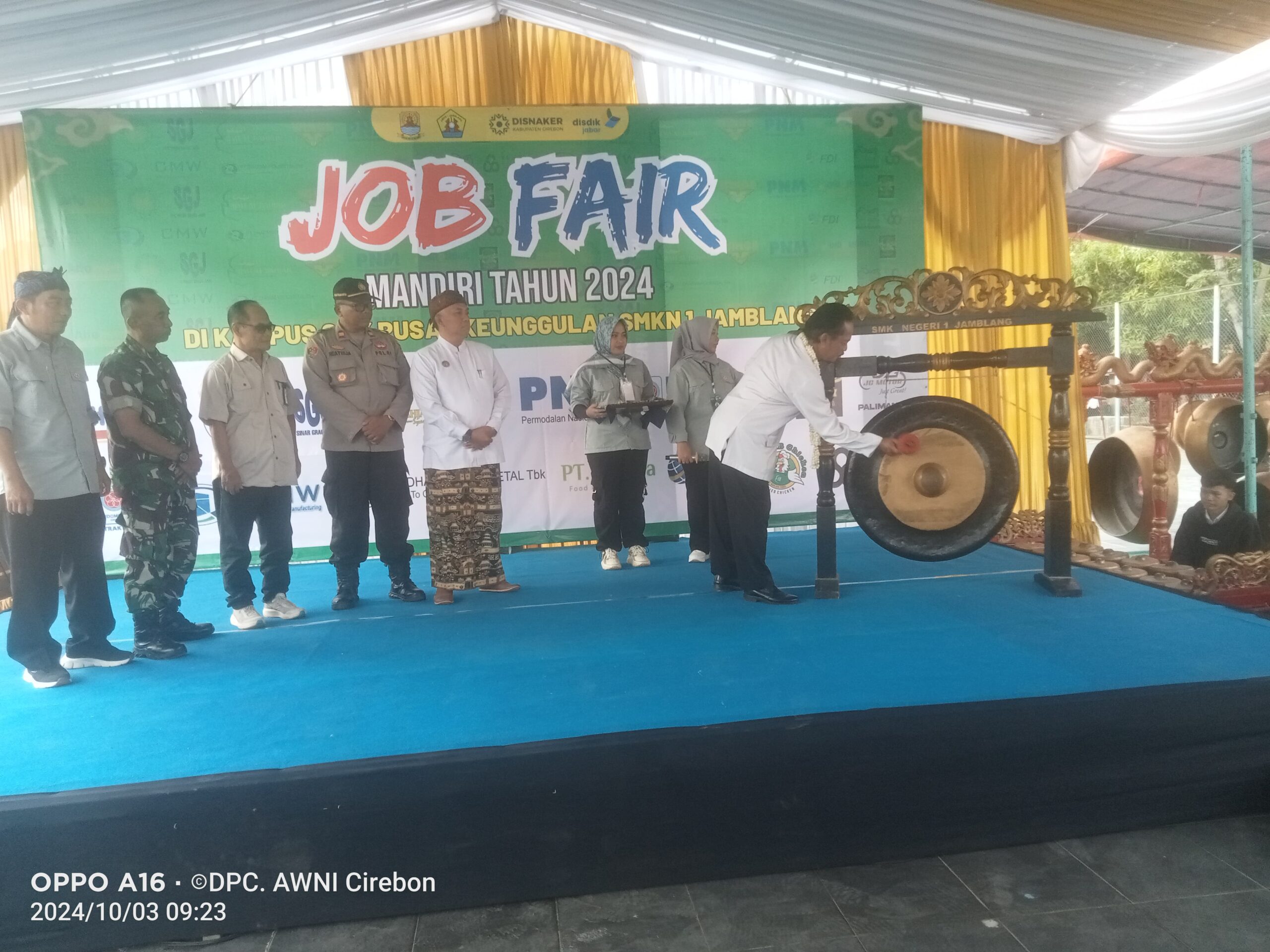 Masih di tempat yang sama perwakilan dari Dinas Tenaga Kerja Kabupaten Cirebon Kasi Pengawasan tenaga kerja Suleman mengungkapkan bahwa dirinya mengapresiasi kegiatan Job Fair Mandiri di SMK Negeri 1 Jamblang Cirebon yang di selenggarakan oleh pihak sekolah yang bertujuan untuk mengurangi Jumlah angka pengangguran di Kabupaten Cirebon.