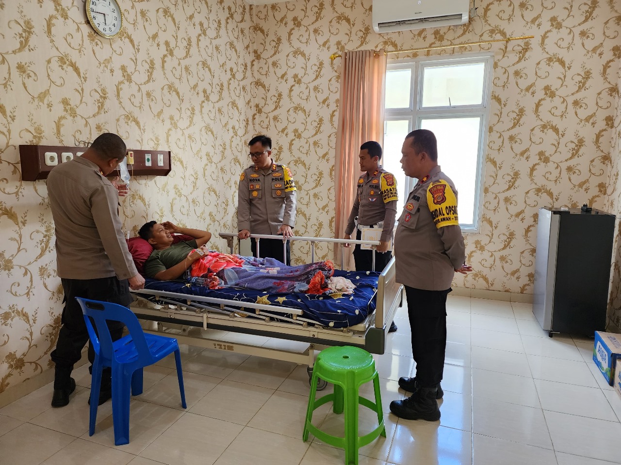 Didampingi Wakapolres Kompol Iswar, S.H., Kabag Ops Kompol Surya Purba, S.H.,M.H. dan Kasat Lantas Iptu Eko Suhendro, S.H., Kapolres memastikan kondisi kesehatan anggotanya dan memberikan dukungan moral.